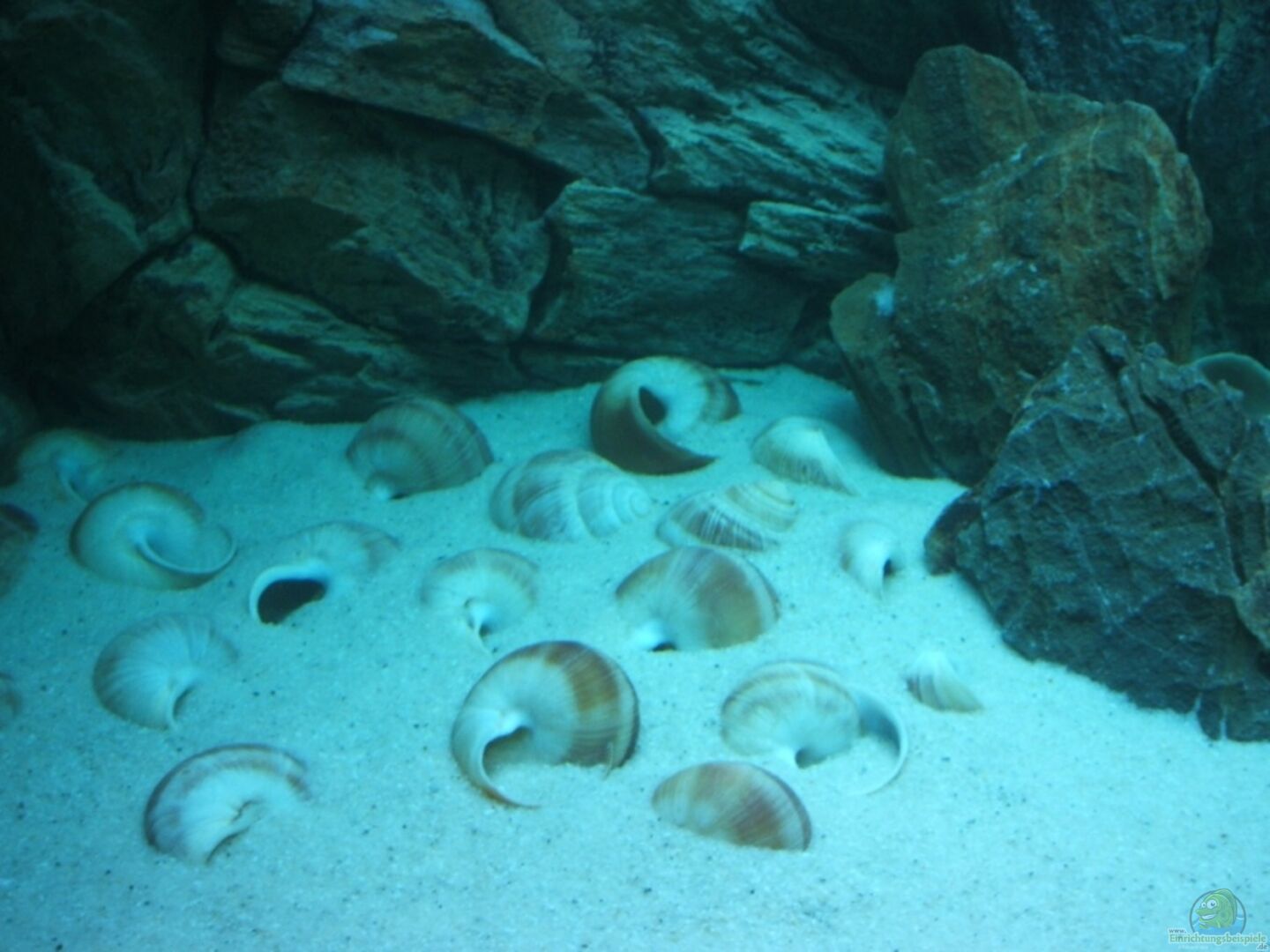 ca. 28 Schneckenhäuser 4 Steine zur Revierabgrenzung direkt auf dem Bodengrund (weil die Kleinen gerne buddeln)