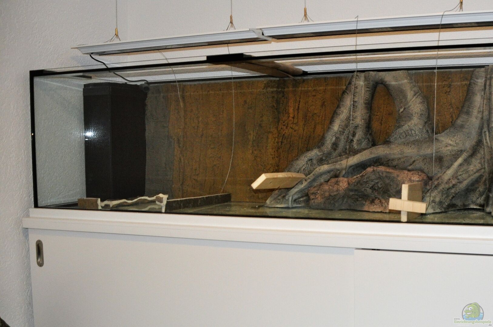 3D-Rückwand von Arstone. div. Welshöhlen aus Keramik und echte Morkienwurzeln.