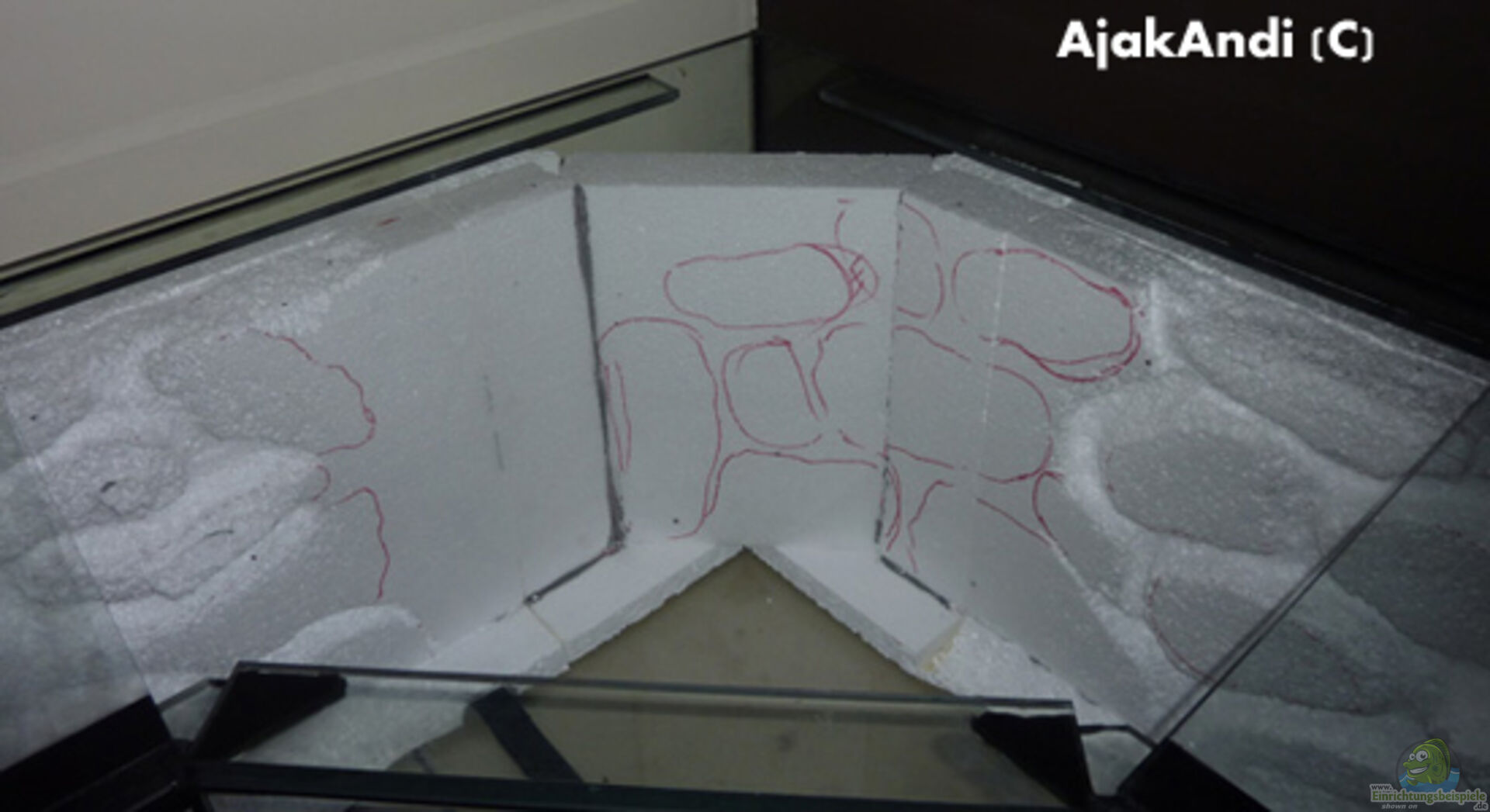 Auch diese Rückwand ist Marke Eigenbau! Sie war unser erster Versuch, welcher auch ganz gut gelungen, heute jedoch von uns nicht mehr so gemacht werden würde. Nicht mal zwangsläufig wegen der Optik, sondern weil wir die Rückwand damals nicht versiegelt haben. Und so gibt es inzwischen 1- 2 Stellen, an denen der Zement abgeplatzt ist und das Styropor durchscheint. Sieht man aber nur, wenn man es wei?? ;-) Desweiteren ist diese Bauweise einfach suboptimal, weil sie viel zu schwer ist [...]