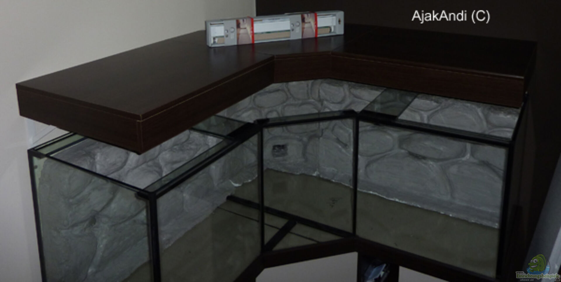 Auch diese Rückwand ist Marke Eigenbau! Sie war unser erster Versuch, welcher auch ganz gut gelungen, heute jedoch von uns nicht mehr so gemacht werden würde. Nicht mal zwangsläufig wegen der Optik, sondern weil wir die Rückwand damals nicht versiegelt haben. Und so gibt es inzwischen 1- 2 Stellen, an denen der Zement abgeplatzt ist und das Styropor durchscheint. Sieht man aber nur, wenn man es wei?? ;-) Desweiteren ist diese Bauweise einfach suboptimal, weil sie viel zu schwer ist [...]