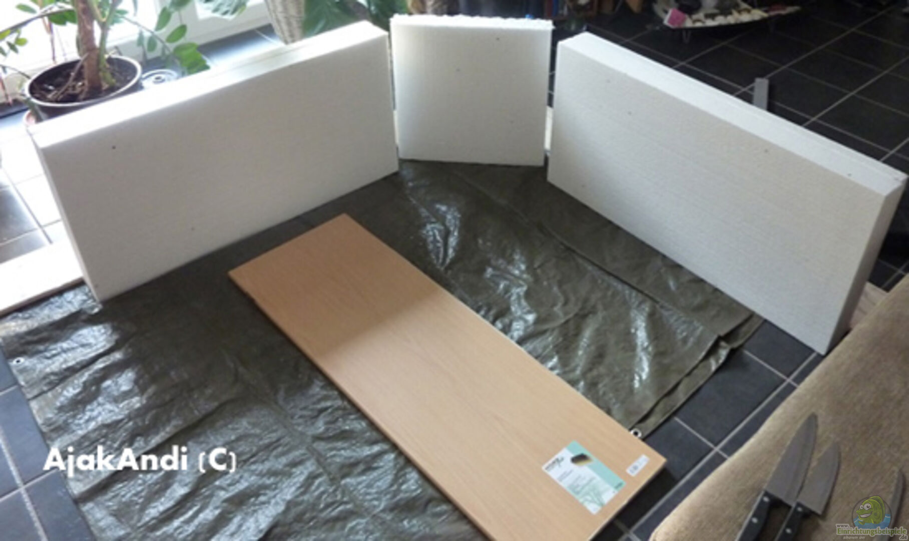 Auch diese Rückwand ist Marke Eigenbau! Sie war unser erster Versuch, welcher auch ganz gut gelungen, heute jedoch von uns nicht mehr so gemacht werden würde. Nicht mal zwangsläufig wegen der Optik, sondern weil wir die Rückwand damals nicht versiegelt haben. Und so gibt es inzwischen 1- 2 Stellen, an denen der Zement abgeplatzt ist und das Styropor durchscheint. Sieht man aber nur, wenn man es wei?? ;-) Desweiteren ist diese Bauweise einfach suboptimal, weil sie viel zu schwer ist [...]