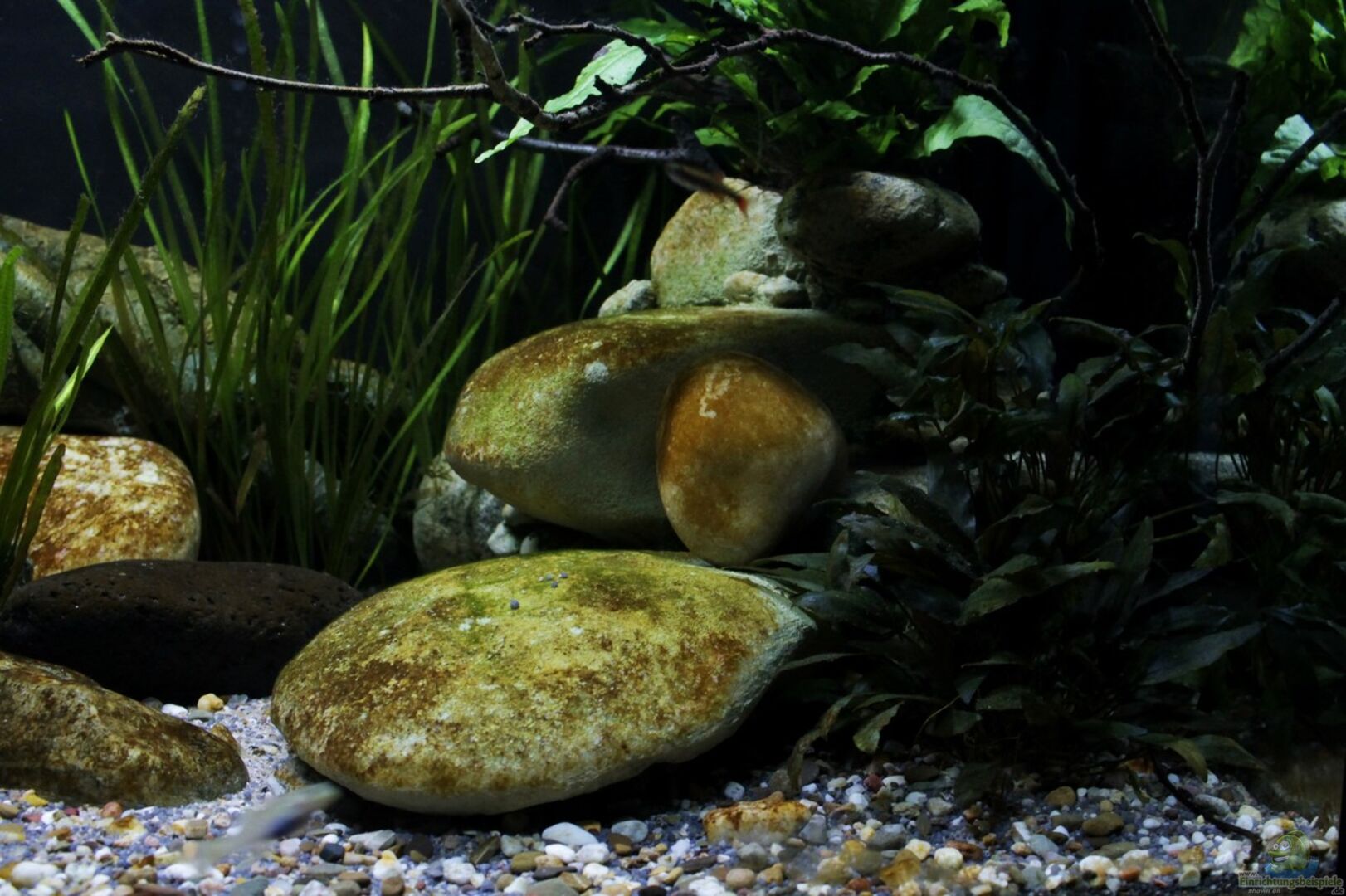 eine künstliche Wurzel, die mittlerweile schön Algen angesetzt hat. ein künstliches Steinelement kleinere und grö??ere Flusskiesel/Broken ein paar feine ??ste von einem Erlenbaum