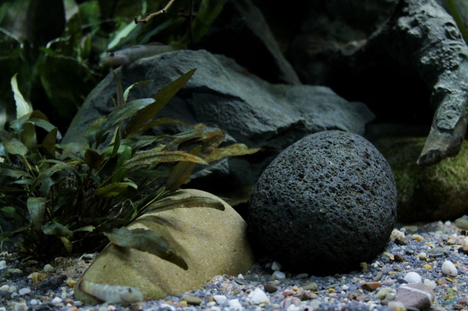 eine künstliche Wurzel, die mittlerweile schön Algen angesetzt hat. ein künstliches Steinelement kleinere und grö??ere Flusskiesel/Broken ein paar feine ??ste von einem Erlenbaum