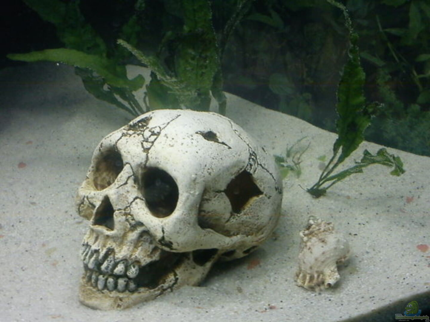 wurzel, totenschädel, kleinere muscheln, der kalkstein wurde entfernt wegen evt zu harten wasserwerten