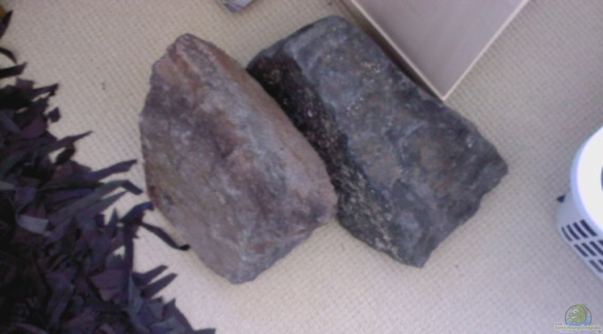 Vorne: -Gro??e Findlinge aus dem Rhein (abgekocht und auf Kalk getestet) -Findlinge aus Schweden -Schieferplatten --auf manchen Steinen ist Javamoos aufgebunden Hinten: -Terrasse aus Schieferplatten, welche dicht bepflanzt ist mit unterschiedlichen Pflanzen. -2 Tonröhren (wie Abflussrohre) in der Terrasse mit eingebracht - Flussfeeling -1 Tonhöhle in der Terrasse mit eingebracht -2 Moorkienwurzeln auf der Terrasse und weiter vorne, damit es aussieht als ob ein Stamm [...]