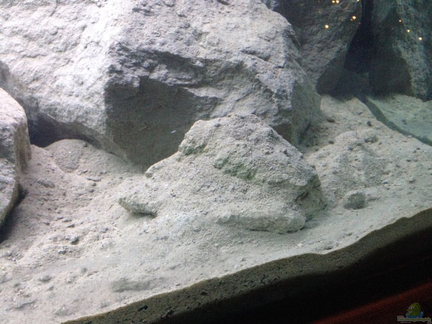 Das Becken wurde mit ca. 250kg Gestein aus Molasse von einem Steinwerk ausgestattet, was eine anschaulich, natürliche Umgebung, schafft. Dazu der gleichfarbige Sand, somit ein idealer ??bergang.