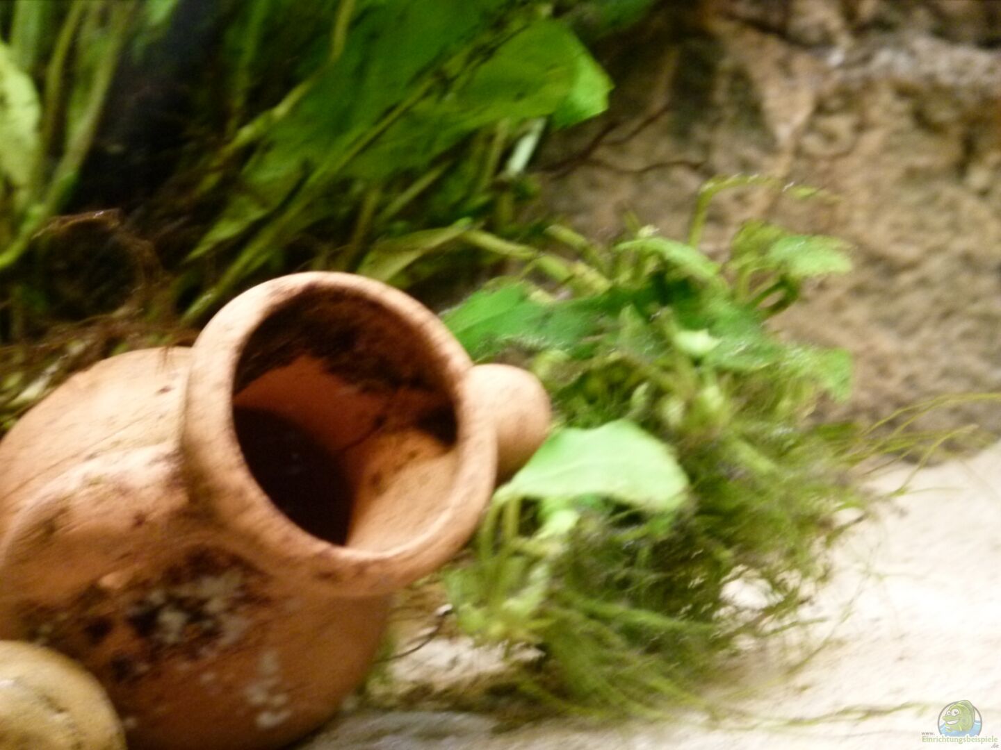 1 kleine "Vase" aus Ton (ca. 8 cm) gro??e Flusskiesel und Steinplatten (alles abgerundet, sodass sich die Fische nicht verletzen können) 1 kleine Wurzel für die Anchistrus