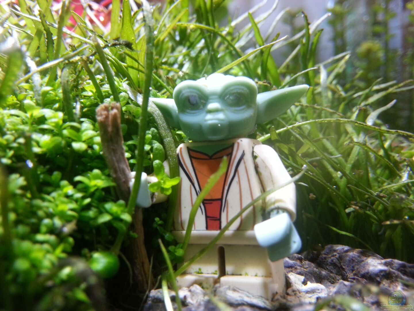 Afrikanisches Pagodengestein Sehr schönes Schichtgestein, wei??lich bis leicht bräunlich. Kann das Wasser leicht aufhärten. Legofigur , , Yoda" künstlicher Tempel