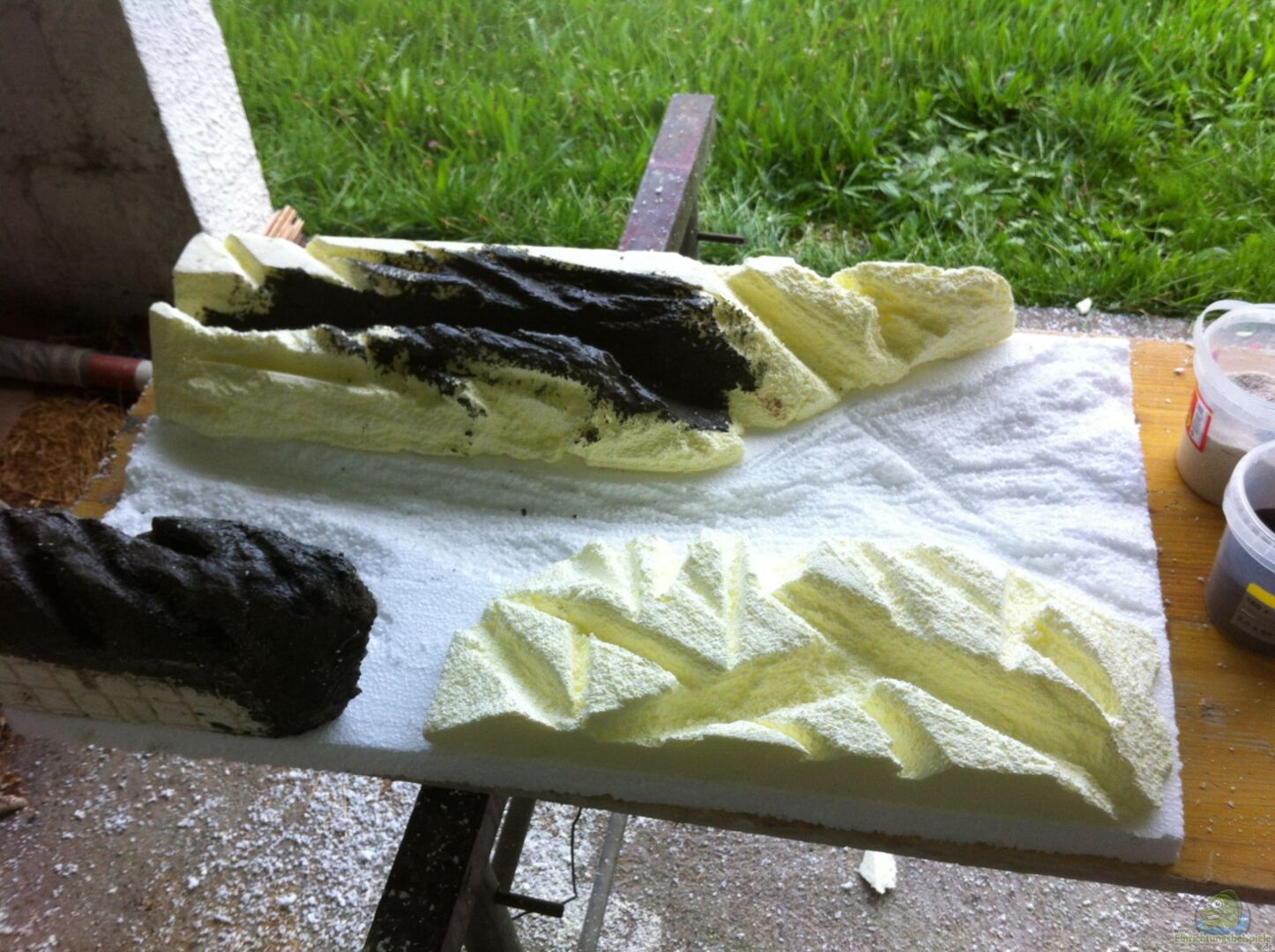 Habe nach langem hin und her mich doch für eine 3D Rückwand entschieden. Da ich aber nicht einsah, mir eine Rückwand zu kaufen die teurer wie das eigentliche Aquarium ist, habe ich mich entschlossen selbst eine zu bauen. Die Rückwand besteht aus Styropor, Silikon, Portlandzement, Sand und Epoxidharz das speziell für Aquarien geeignet ist. Man könnte auch bestimmt ein 0815 Epoxidharz aus dem Baumarkt hernehmen, jedoch war mir die Sache zu unsicher wegen eventuellen Ausdunstungen. Eingeklebt [...]