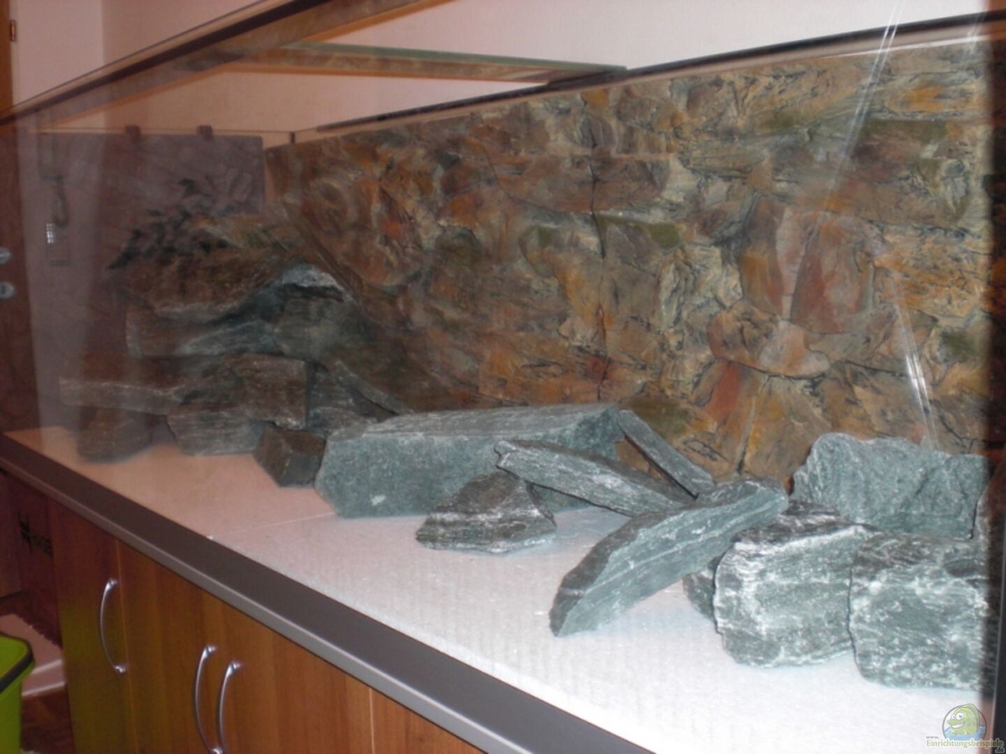3D Rückwand mit Motiv Stein/Fels 200x60 1x Struckturrückwand von Juwel ´Stone Granite´ 60x55 auf der linken Seitenscheibe dunkler Bruchstein aus einem nahe gelegenen Steinbruch ca. 210kg