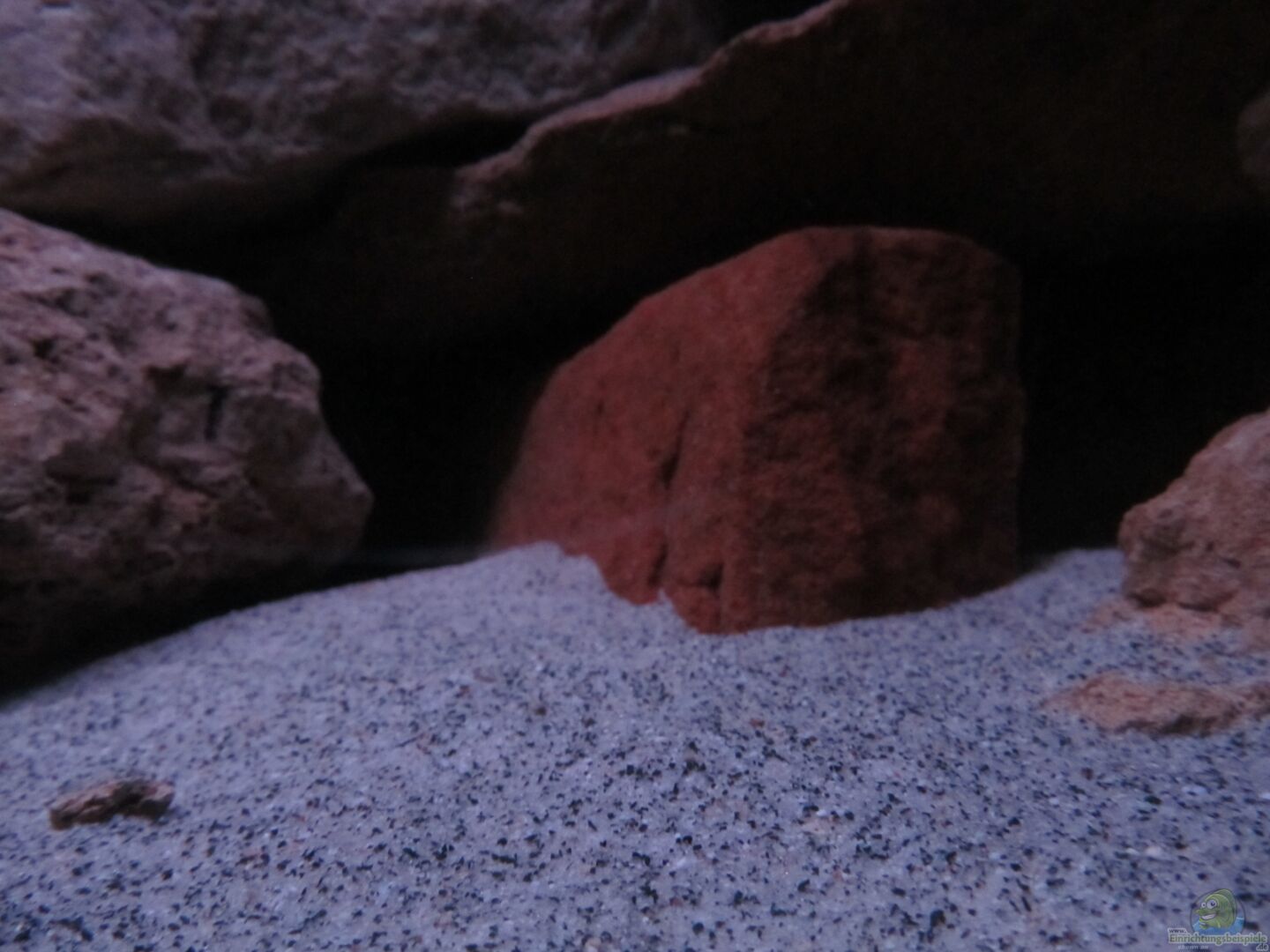 ca. 110 Kg Sandsteine aufgestapelt bis knapp unter die Wasseroberfläche. Dabei viele Höhlen und Ritzen geschaffen. Die Steine wurden aus einem Fundus von mehreren Tonnen so ausgewählt, (ich habe gerade im Garten Natursteinmauern gebaut) da?? sie in sich halten und nicht verklebt werden müssen. Es wurde auf den Beckengrund eine 10mm starke Styroporplatte und darüber eine 5mm starke Plexiglasscheibe aufgebracht. Darauf habe ich die erste Reihe Steine angeordnet. Es wurde auch eine Bodenheizung [...]