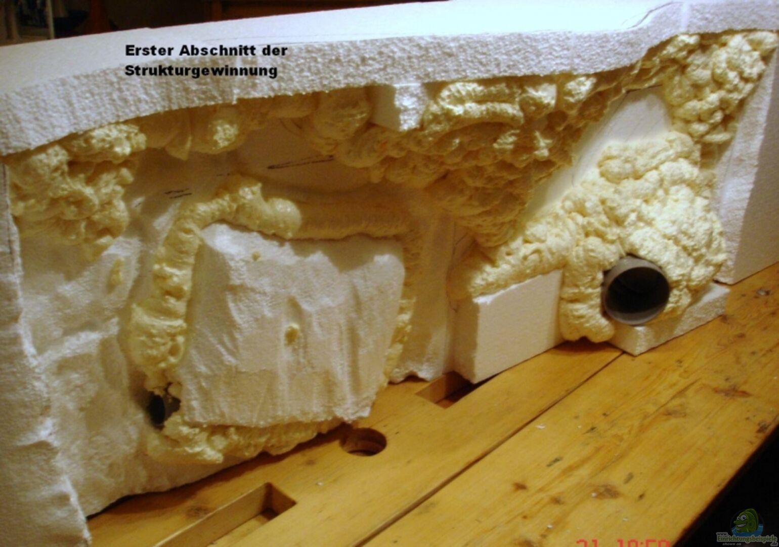 altes Lochgestein aus dem Malawi-Becken, schön mit Algen bewuchert.. Bau einer Rückwand: