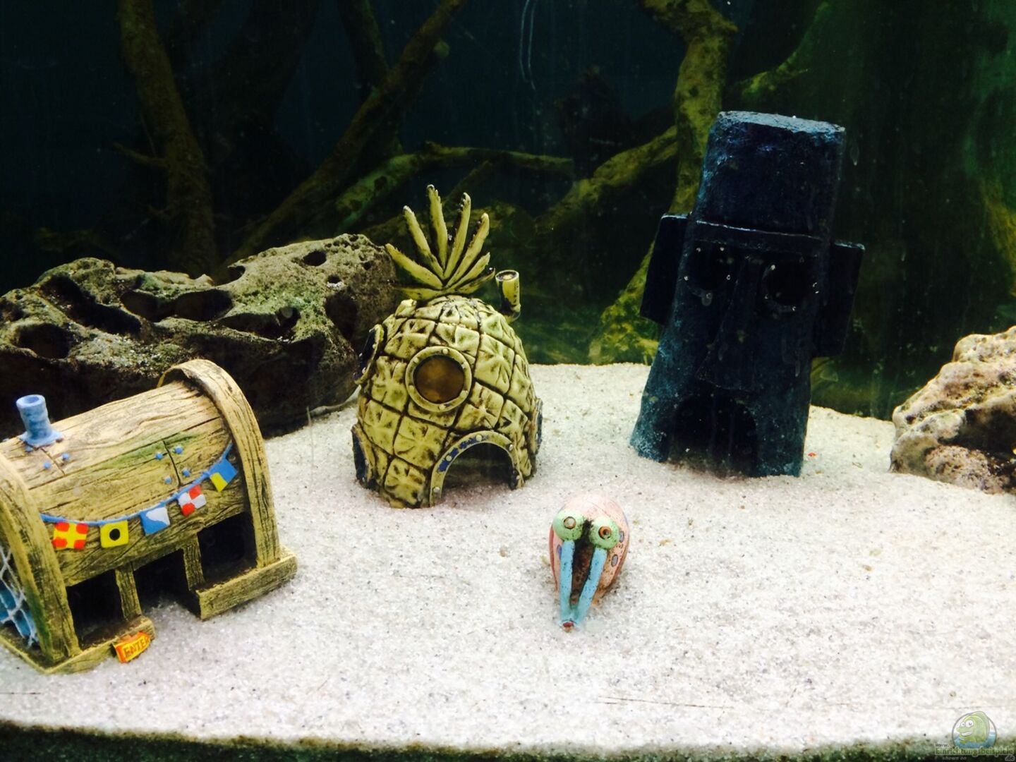-3 gro??e Wei??e Lochgesteine - 1 Ziegelstein mit löchern zum verstecken und Rückzugsort für Jungtiere - Spongebob Deko von Freunden wird ebenfalls zum Rückzug genutzt