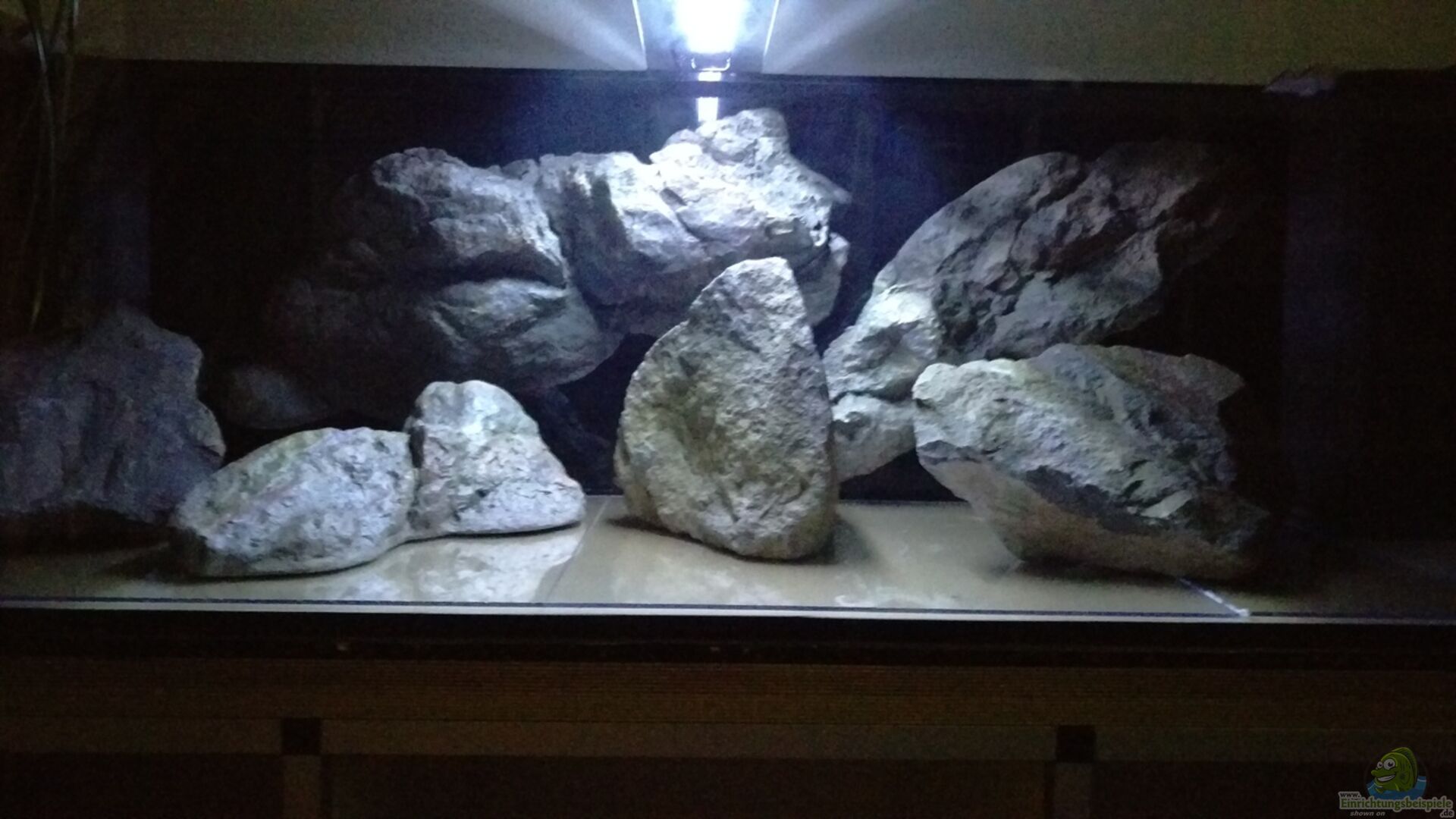 Die Einrichtung besteht zu einem aus Rockzolid Modulen bzw. Riverstones aus meinem Vorgängerbecken und zum anderen aus echten Steinen. Zum Schutz der Bodenscheibe wurde eine 4mm dicke Plexiglasscheibe eingesetzt. An die Rückscheibe habe ich jeweils das RZ Modul H und G mittels Saugnäpfen angebracht. Das G Modul liegt unter dem H Modul schräg nach vorne auf dem Boden. Diverse Riverstones wurden warlos ins Becken gelegt. Zurzeit gefällt mir die Gestaltung doch recht gut. Eventuell wird doch [...]