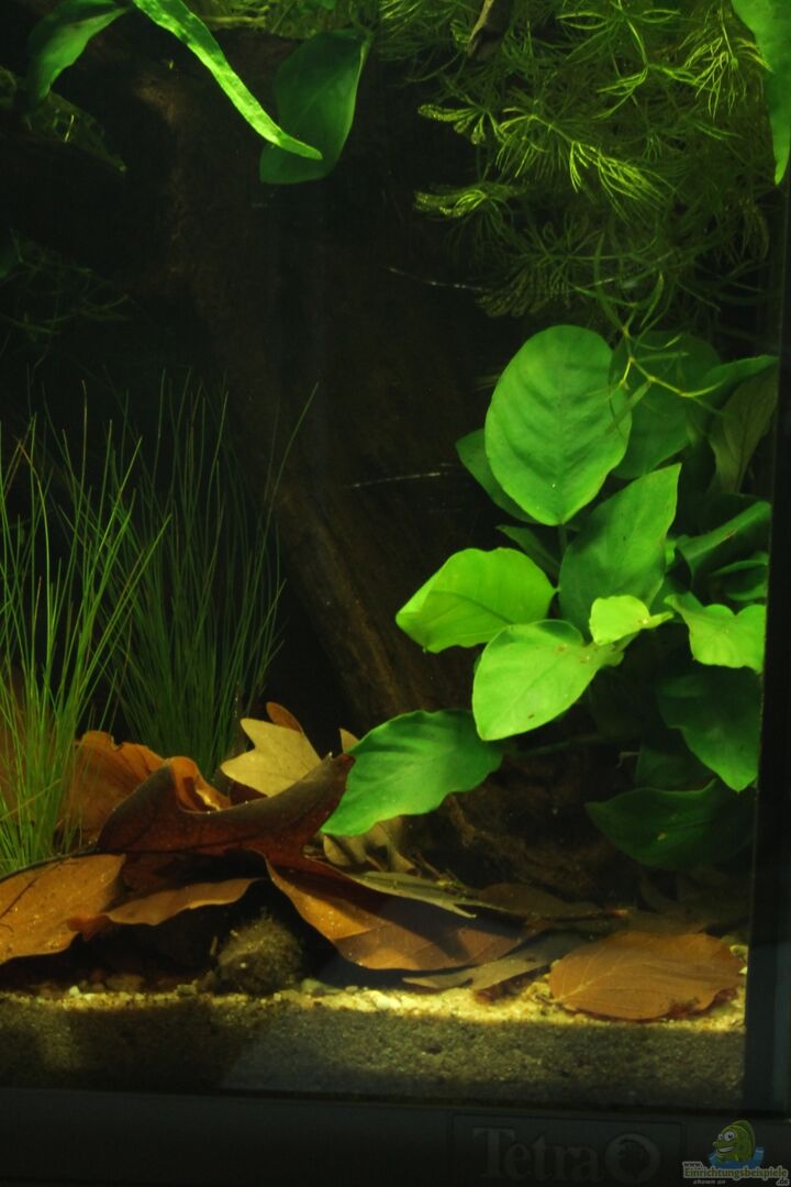 2 Mangrovenhölzer 2 Moorholz Wurzeln 2 künstliche kleine Wurzeln, die mit einem Saugnapf versehen sind. Diese sind recht weit oben im Becken angebracht. Hier bot es sich an, die Farne auf zu binden. Laub von Erle, Buche, Birke, Eiche, Erlenzapfen