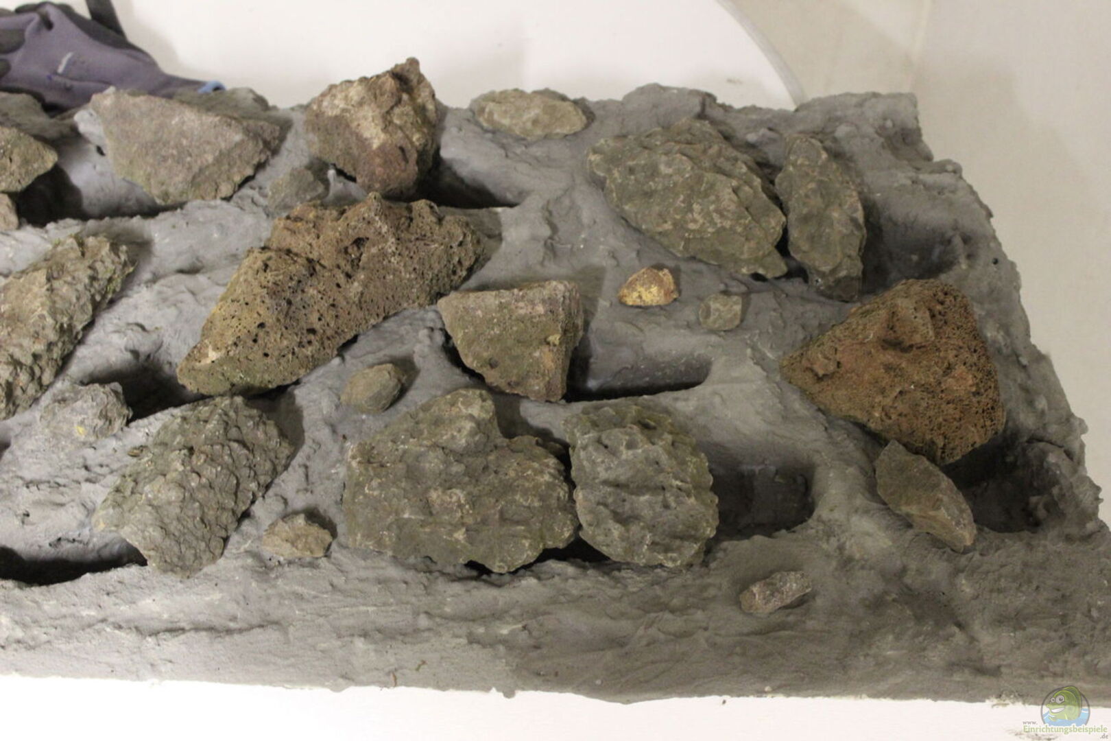ca. 20kg Mangrovenwurzeln und jede Menge Eichenlaub (auf ??stchen) und Erlzapfen sowie diverse Tonhöhlen im Hintergrund