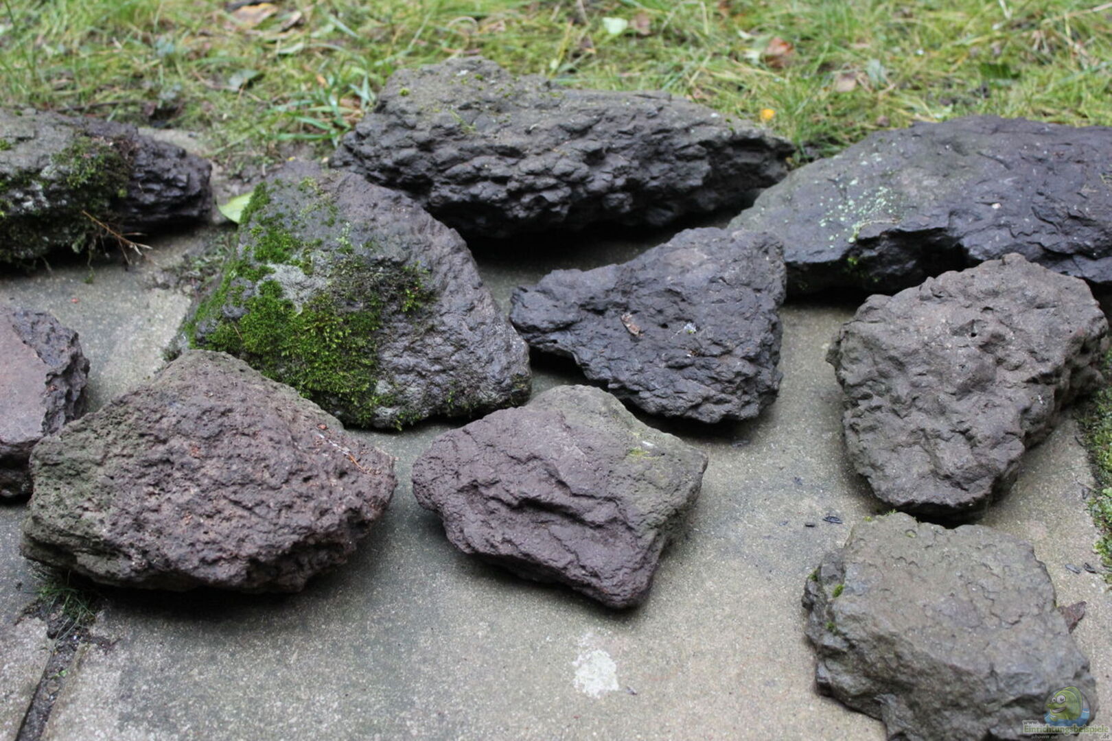 ca. 20kg Mangrovenwurzeln und jede Menge Eichenlaub (auf ??stchen) und Erlzapfen sowie diverse Tonhöhlen im Hintergrund
