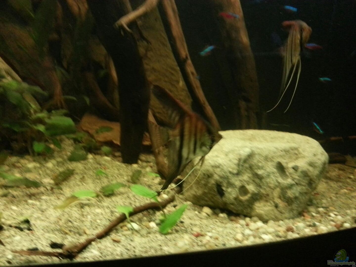 Gestein: Sandstein in verschiedenen Grö??en. Im Becken befinden sich ca. 50KG. Holz: Verschiede Moorwurzeln aus dem Emsland und dessen Mooren. Rückwand: Die Aquarienrückwand habe ich auch Zement, Kokosfasern und Flusssand gefertigt. Der Rest der Seiten- und Rückscheibe wurde mit Abtönfarbe von au??en gestrichen.