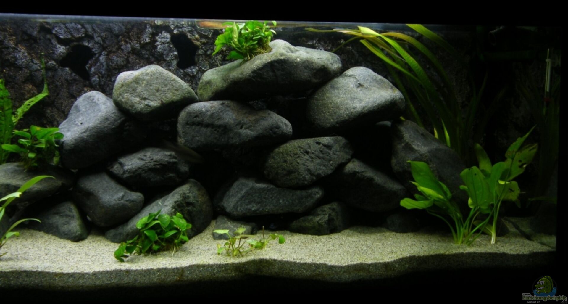 Rückwand ist von steinzeit-design.at, Barschrückwand miteinander verbundenen höhlen ca. 10 stk. Im Rückwand, 7 cm über dem sand, ist eine bohrung mit einem Durchflussgitter, die ist an einem 50 mm PVC Rohr verbunden. Das Rohr ist bis über der Wasseroberfläche verlegt, in dem rohr sind die saugseiten der Filter. Im Aquarium ist noch 120 kg Granit Gestein, so gestaltet das möglichst viele Verstecke entstehen und noch 5 kleine endere steine, als Nachwuchs Herberge. Unter den Steinen ist eine [...]