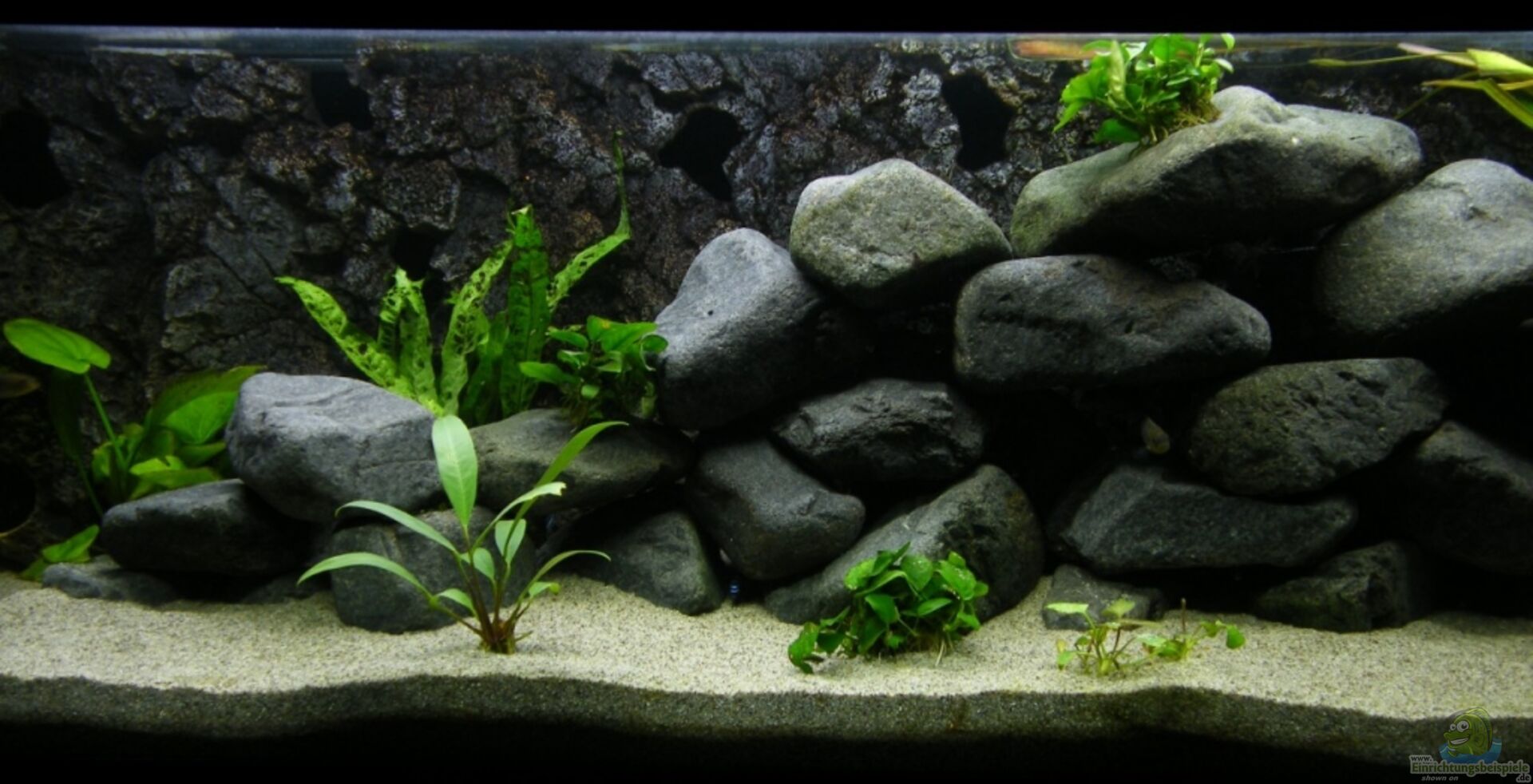 Rückwand ist von steinzeit-design.at, Barschrückwand miteinander verbundenen höhlen ca. 10 stk. Im Rückwand, 7 cm über dem sand, ist eine bohrung mit einem Durchflussgitter, die ist an einem 50 mm PVC Rohr verbunden. Das Rohr ist bis über der Wasseroberfläche verlegt, in dem rohr sind die saugseiten der Filter. Im Aquarium ist noch 120 kg Granit Gestein, so gestaltet das möglichst viele Verstecke entstehen und noch 5 kleine endere steine, als Nachwuchs Herberge. Unter den Steinen ist eine [...]
