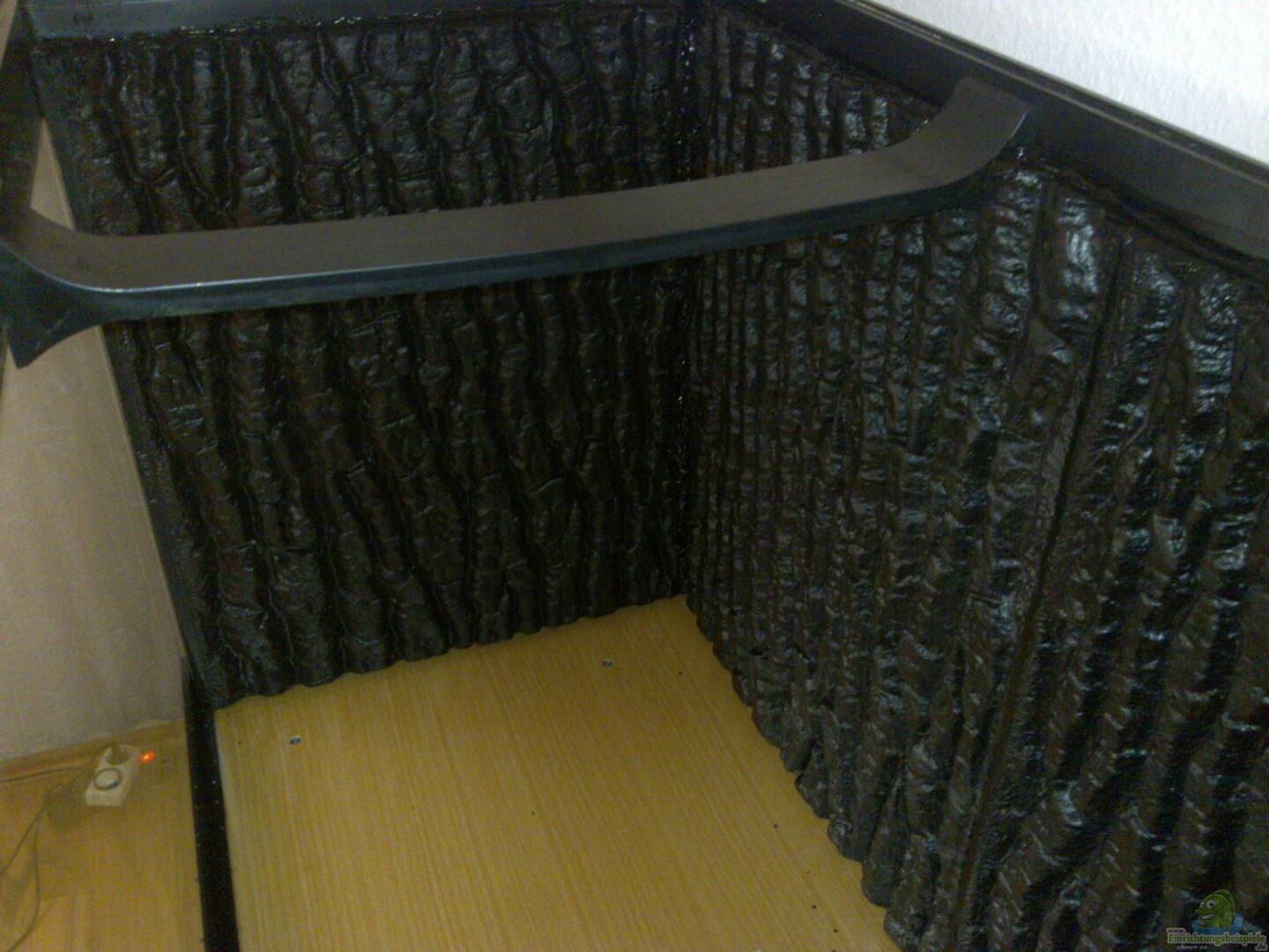 Das Aquarium ist hinten sowie an den Seitenscheiben und dem Filtergehäuse von Innen mit Wandmodulen in Baumrindenoptik (schwarz) beklebt. Seiten- und Rückwand sind auch von au??en mit Styropor beklebt, die Stromrechnung muss ja nicht schlimmer werden, als nötig ;-) durch die Innenbeklebung wäre ohnehin kein seitlicher Einblick mehr möglich. Die Einrichtung besteht aus gro??en Mangrovenwurzeln, die zu einem ??berhang höhlenähnlich kombiniert wurden. Diese Konstruktion wird seitlich von [...]