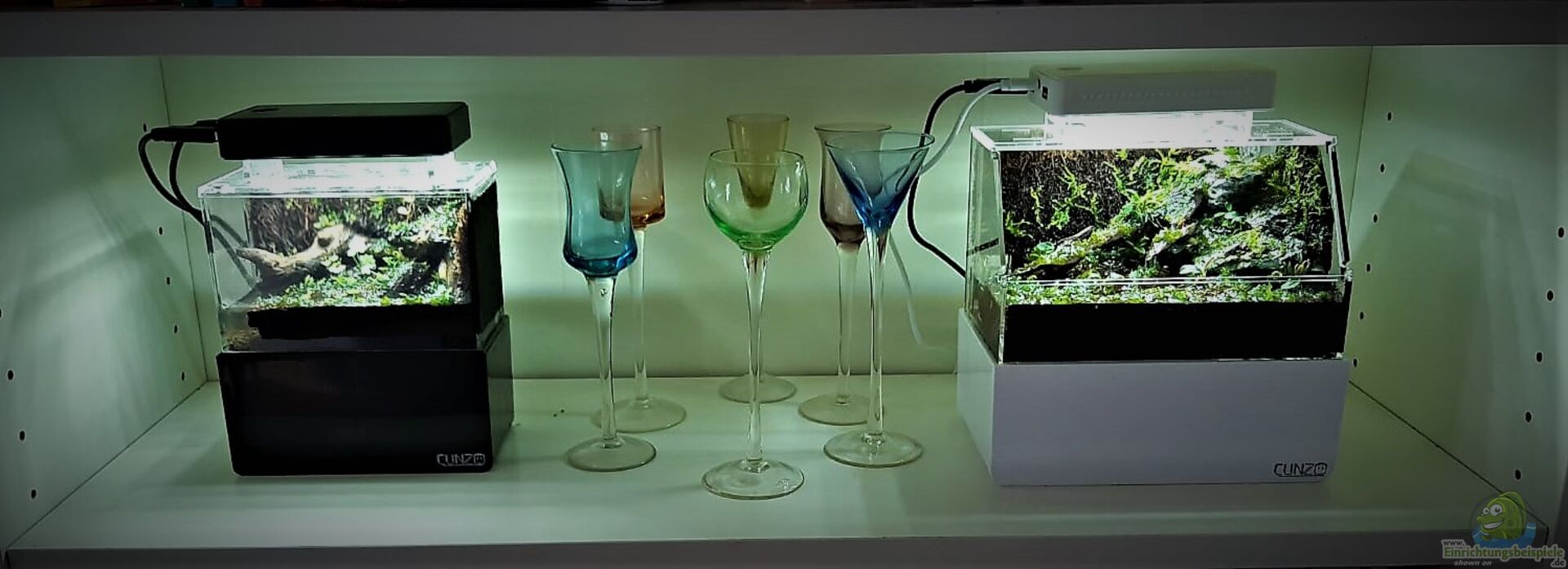 Eine Mangrovenwurzel, über die Wasser geleitet wird, bildet den Hauptast im Terrarium. Sie ist mit Moos bestückt und wird dauerfeucht gehalten. Die Rückwand ist mit Xaximplatten ca. 0, 5 cm dick, verkleidet. Sie wurden mit Aquariensilikon befestigt.
