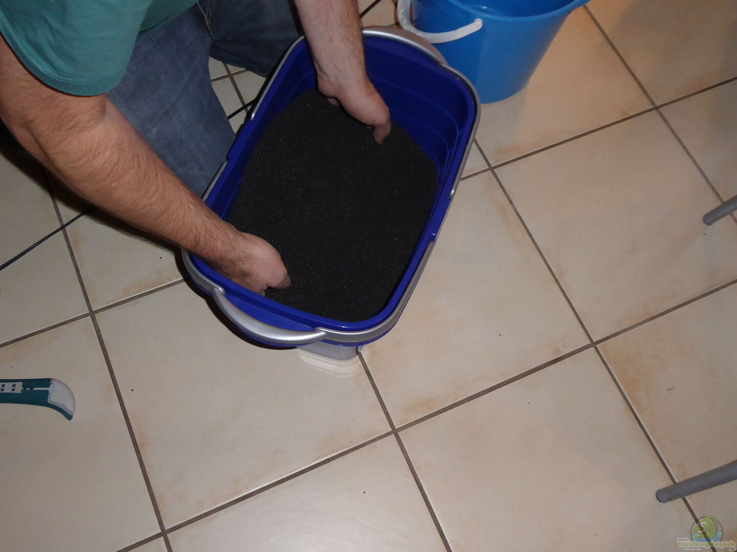 Als Rückwand benutze ich die "Stone Granit" von Juwel. Diese habe ich dann mit einem standard Aquarienkleber befestigt. Auf den Boden habe ich eine 2mm Plexiglasscheibe gelegt, damit das Glas nicht durch die Steine beschädigt wird. Die Platte am besten vor der Rückwand einsetzen. ich bekam die Platte nicht mehr rein und habe sie in der mitte geteilt. Beim Einkleben der Rückwand habe ich ca. 1cm Abstand vom boden gelassen. Da dies mein zweites Becken ist, habe ich die Filtermedien [...]