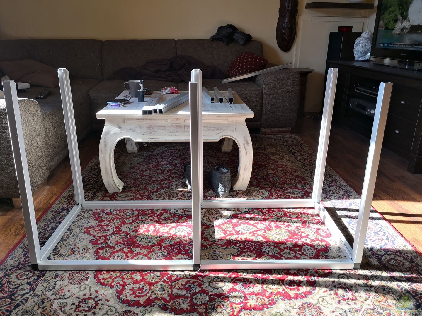 Becken Das Glasaquarium ist eine eine Anfertigung von der Firma LTE/Aqurienkontor und hat die Ma??e 120x50x50. Die Kanten des 8mm dicken Glases sind diamantgeschliffen. Die Scheiben wurden sto??verklebt und mit Sicherheitsnähten aus Silikon doppelt verklebt. Das Becken hat auch zwei Längsstreben und eine Brücke. Abdeckung Die Abdeckung ist auch von der Firma LTE/Aqurienkontor. Es ist ein Kunststoffprofilrahmen mit Tropfkantenschutz und drei Abdeckplatten. Das Dekor nennt [...]