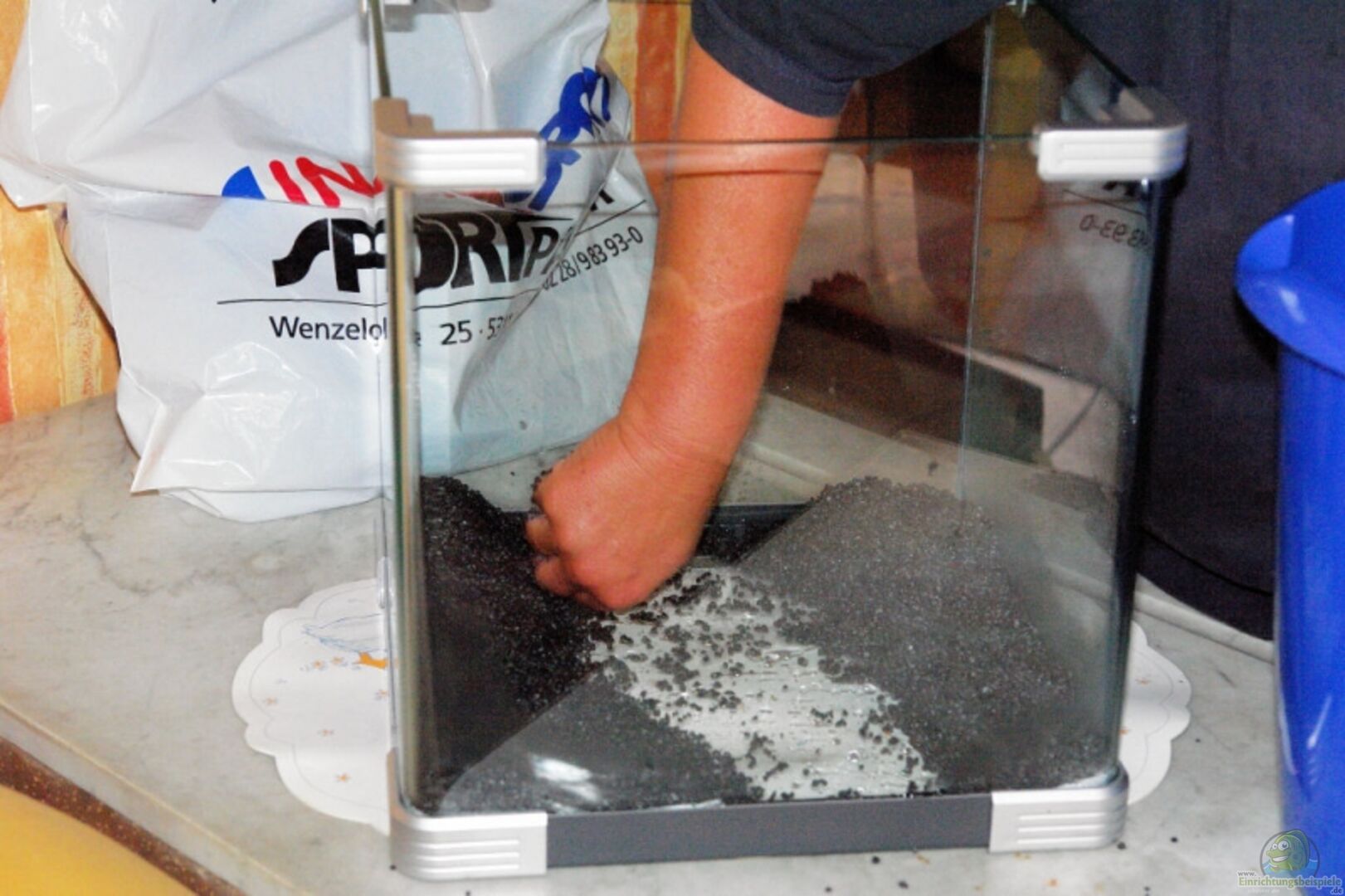 Superfish Aqua Qube 25, 25 Literbecken mit "runden" Kanten. Das Becken dient als Aufzuchtbecken für unsere Zwergkrallenfrösche und Metall Panzerwelse.