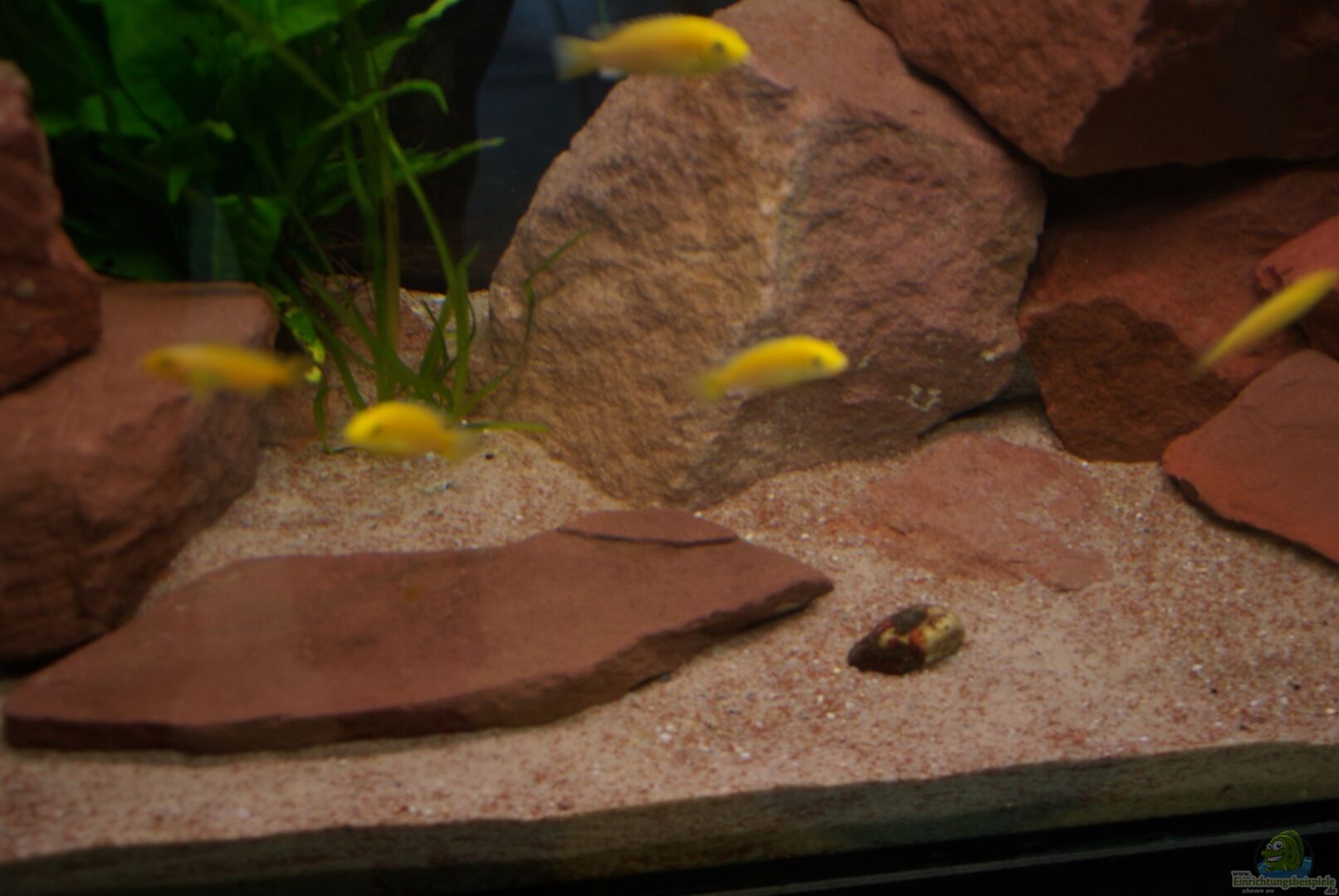 ca. 60 kg Roter Sandstein. als Unterlage dient eine 20mm Styrodurplatte. Rechts bis unter die Wasseroberfläche und mit einer Plexischeibe an der Rückwand gesichert. Die Steine reichen von der Rückwand bis ca. 5 cm vor die Frontscheibe und bilden viele Höhlen und Durchgänge, in der hinteren Ecke befindet sich der JBL Topclean Skimmer. Dieser Steinhaufen ist das Revier meines Saulosibocks, ausserdem befinden sich im hinteren Bereich auch kleinere Höhlen als Versteckmöglichkeit für [...]