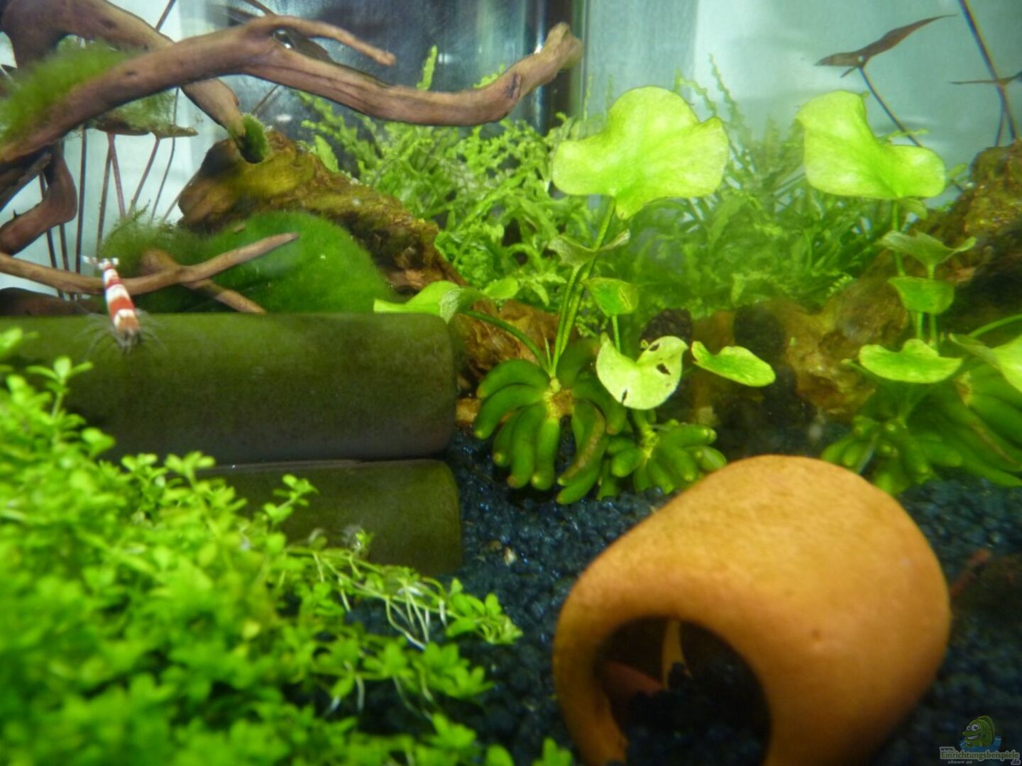 1 Wurzel 1 Mooskugel 1 Dennerle Nano 3-fach Röhre 1 kleiner Tontopf 1 Dennerle Garnelen-Felsen 1 Seemandelbaumblatt Erlenzapfen; übrigends habe ich das mit den Erlenzapfen erst hier auf EB gelernt. Ich wu??te vorher nicht genau wie Erlen aussehen, bzw. wo man sie finden kann. Erst ein anderer User auf EB erklärte mir, da?? Erlen hauptsächlich in der Nähe von Bächen stehen. Also machte ich mich auf die Suche und seit dem kenne ich sogar mehrere Plätze ganz bei mir in der [...]