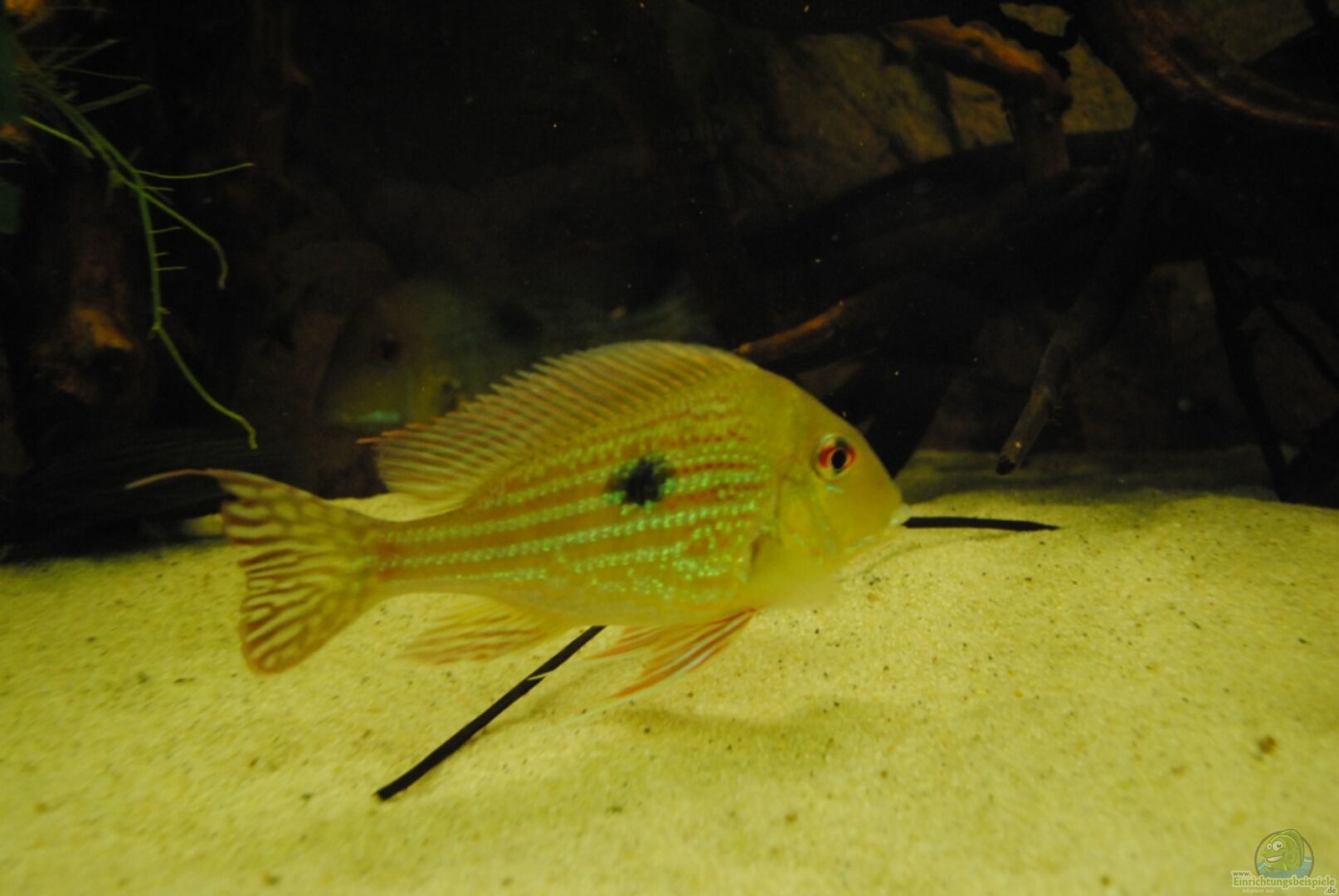 - 4 Geophagus megasema (wahrscheinlich 2/2; 17-24 cm) Quelle: ajot (geophagus.org) Erstbeschreibung:Heckel, 1840 wissenschaftlicher Name:Geophagus magasema Namensbedeutung:´megasema´ = mit gro??en Fleck weitere Bezeichnungen:- Herkunft/Fundorte:Rio Gaupore, Rio Urupa, Rio San Martin typische Merkmale:gro??er, runder Lateralfleck, ohne Kiemendeckelstrich Grö??e:bis ca. 23cm Fortpflanzung:larvophile Maulbrüter Bemerkungen:aquaristisch wenig bekannt. Eigene Beobachtungen: [...]