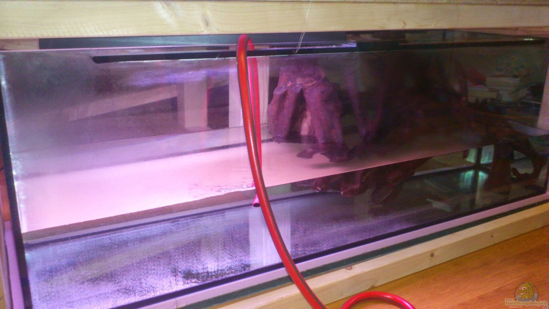 Das Becken ist unter ein Fussbodenpodest eingeschoben und steht somit, von der einen Hälfte des Zimmers aus gesehen, ebenerdig. Mein altes Becken (100x40x40, 160 Liter) wurde plötzlich undicht. Also hatte ich erhöhten Ansporn den lange gehegten Traum eines grö??eren Beckens schnell umzusetzen. Den Platz dafür hatte ich bereits beim Einbau des Fussbodenpodestes im Winter 2013 in meinem Wohnzimmer vorgesehen. Leider hat die Spedition bei der Lieferung des neuen Beckens nicht sonderlich [...]