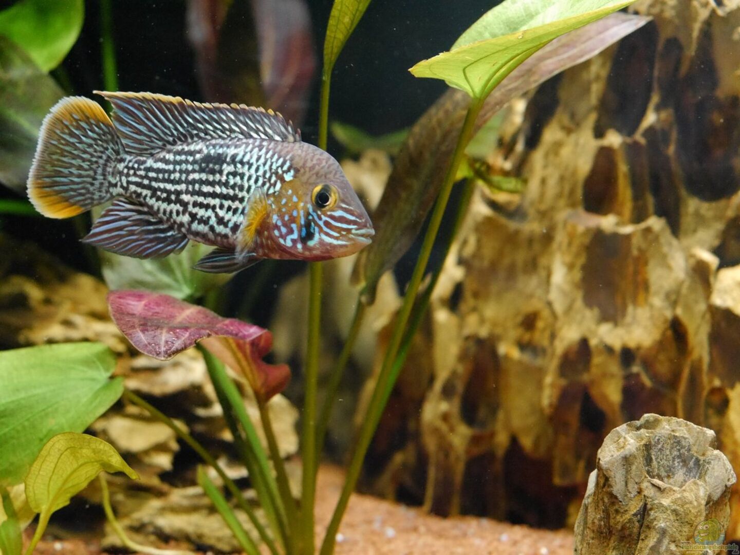 4 x Aequidens Rivulatus / Goldsaumbuntbarsch: 1m + 3w Das gro??e Männchen ist ein Traum. Es umwirbt ständig die drei Weibchen. Eins hat alle 4 Wochen Junge und das zweite auch schon einmal bisher. 4 x Thorichthys meeki / Feuermaulbuntbarsche Ich nehme an die 4 sind Geschwister. Sie schwimmen immer als Gruppe umher. Mittlerweile hat sich einer aus der Gruppe gelöst und bedroht regelmä??ig die 3 anderen. 2 x Pelvicachromis pulcher / Purpurprachtbarsch (1m + 1w) 3 x Panzerwelse 3 [...]