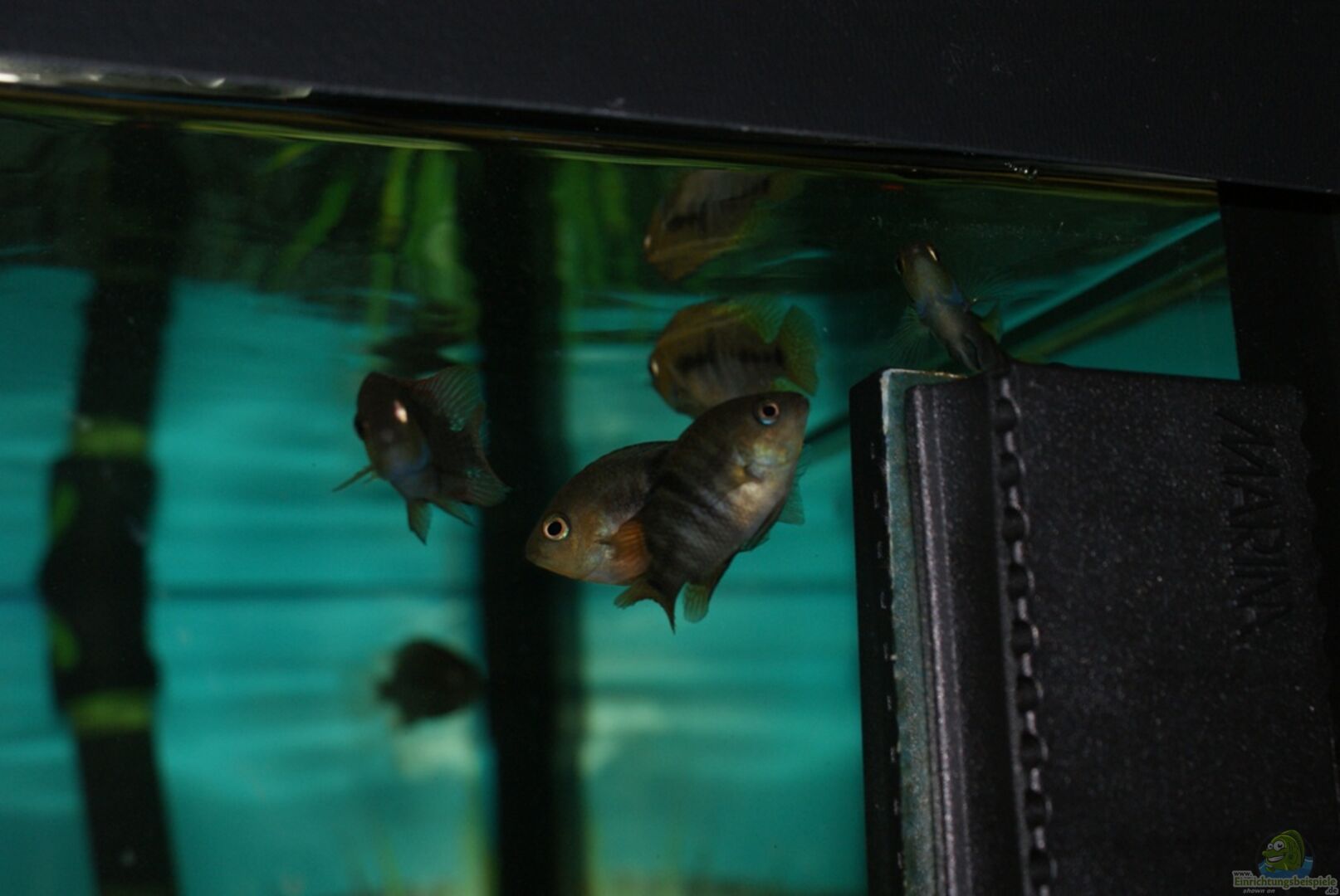 2 Aequidens pulcher (Blaupunktbuntbarsche): 2w (daher suchen wir noch einen Kerl :-) ) 7 Cichlasoma saijca: 4w, 2m, ein Baby 5 Zebrarennschnecken (bis das Becken richtig eingefahren ist) 12 Corydoras paleatus (Marmorierte Panzerwelse) 5 Corydoras leopardus (Leoparden Panzerwelse) 2 L-Welse (Hypancistrus inspecto)