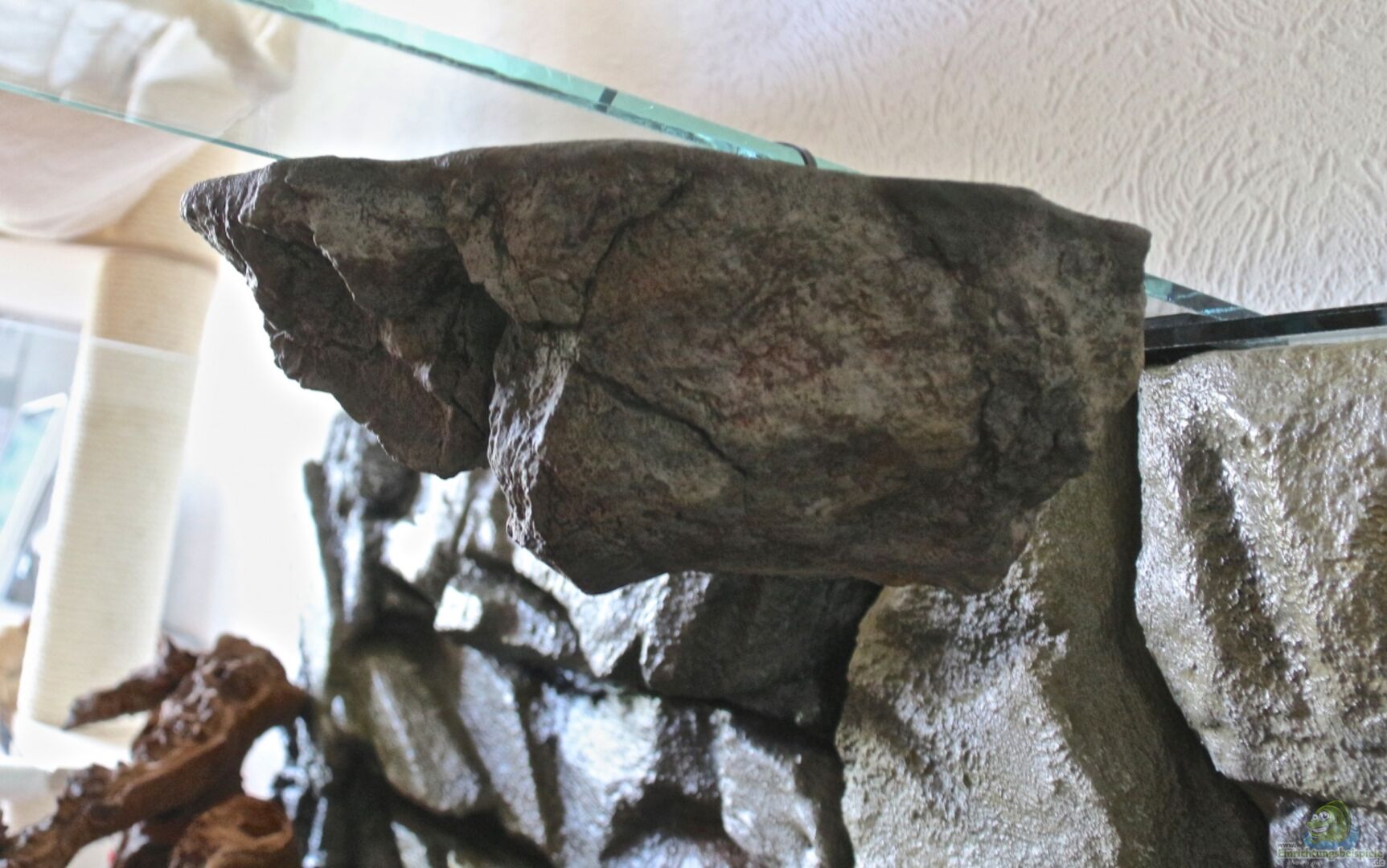 3-teilige Rückwand und rechte Seitenwand sowie 2 Riffplatten in Eigenbau (siehe Block 3) Tiefe der Rückwand 2-16 cm mit vielen Spalten und ??berhängen als Versteckmöglichkeiten. Rockzolid Stone Module D (32x13x13) als hängender Stein unter der Querstrebe Rockzolid River Stone J (56x39x34) ca. 1/3, 2/3 geteilt und ins Becken gestellt um etwas Gewicht zu sparen. In den River Stone Teile sind auf den Rückseiten Aussparungen um als Höhlen zu dienen. Zusätzlich befinden sich noch [...]