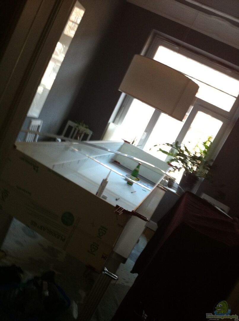 !!!! Der Umzug ist gut verlaufen, es steht jetzt an seinem neuem Platz und wird jetzt von mir an einigen Stellen optisch und technisch überarbeitet in den nächsten Wochen und dann auf Petros umgestellt !!!! Das Becken: Besteht aus 15mm Glas und ist eine Vorort-Verklebung (stossverklebt, zweiteilige Bodenplatte, eine Lochbohrung). Ein 3 Kammer Bio- Innenfilter 60 x 70 x 20 cm mit Wasser Ablasshahn ist in der Ecke hinten links verklebt. Der Wasserstand beträgt jedoch nur zirka [...]