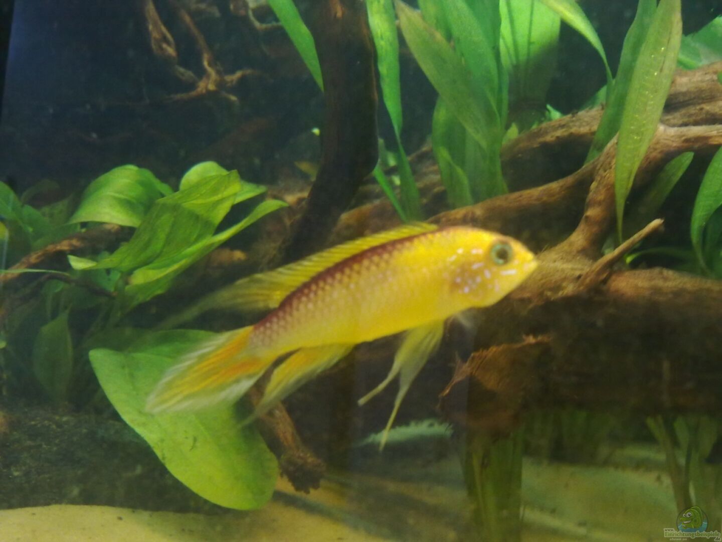 1/1 Apistogramma agassizii Handelsname: Agassiz - Zwergbuntbarsch Herkunft: Südamerika Lebensraum: Uferzone mit Höhlen und Fallaub Grö??e: Männchen ca. 10cm, Weibchen ca. 8cm Futter: Lebend- und Trockenfutter Becken: ab 80 Liter Geschlechtsmerkmal: Männchen werden erheblich grö??er als die gelbraungefärbten Weibchen Fortpflanzung: Höhlenbrüter, Männchen und Weibchen bewachen das Gelege soz. Verhalten: Die relativ friedliche Art lässt sich [...]