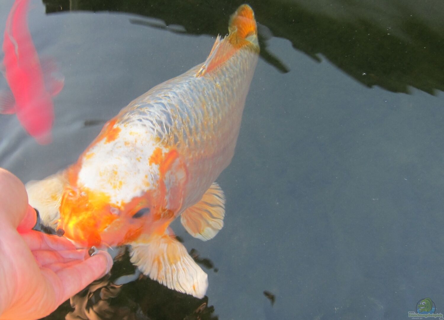 ca. 20 Goldfische (Carassius gibelio forma auratus) 1 Koi (Cyprinus carpio) ca. 10 Goldelritze (Pimephales promelas Gold) viele viele Bitterlinge (Rhodeus amarus) ca. 20 Spitzschlammschnecken (Lymnaea stagnalis) etwa 4 - 5 Teichfrösche (Rana "esculenta" neu Pelophylax "esculentus") Teichmuscheln (Anodonta cygnea) 2 wurden eingesetzt und seitdem nicht mehr gesehen, aber sie müssen noch leben, denn die Bitterlinge vermehren sich prächtig.