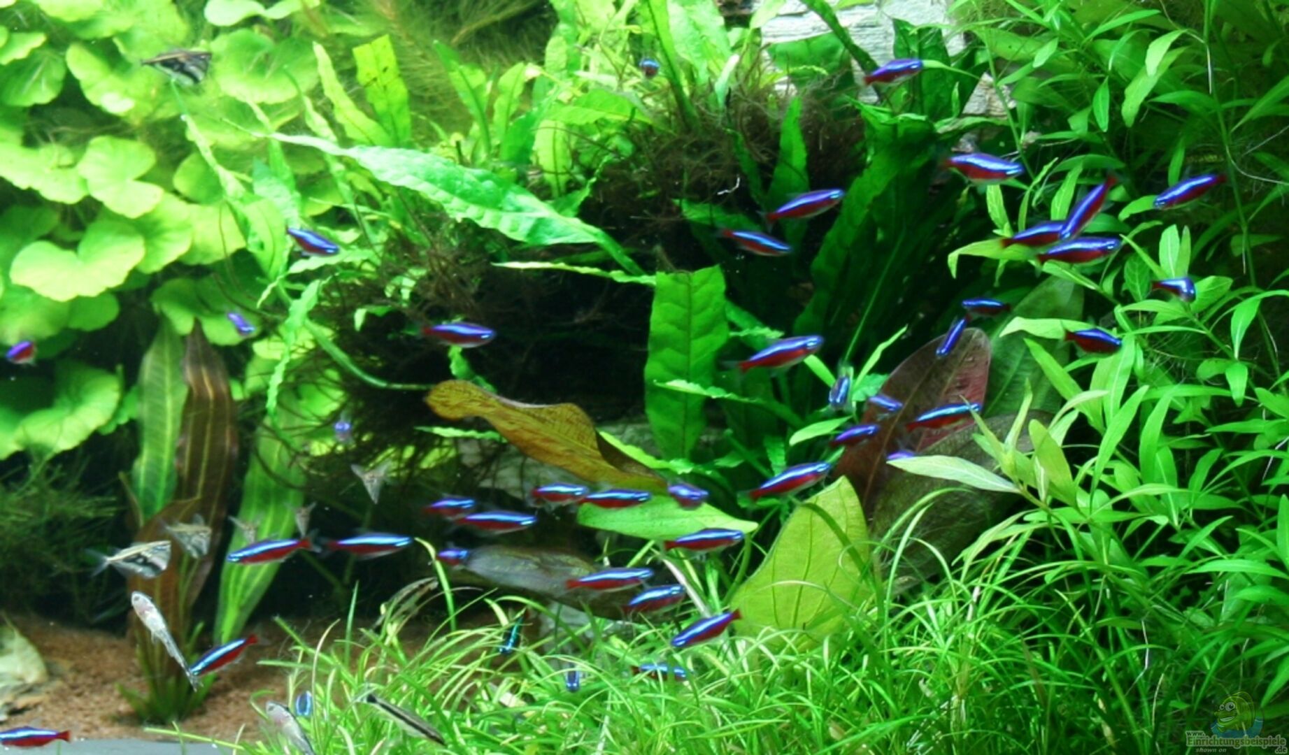 Stand 05.04.2015: 1m Apistogramma agasizii (agasiziis Zwergbuntbarsch); "Charly" zur Zeit alleine 3 L103 Pecoltia spec. ca. 8 Caridina vaponica (Amano-Garnelen) ca. 11 Otocinclus macrospilus (Ohrgitterharnischwels); "Die Horde" ca. 30 Paracheirodon axelroid (Roter Neon); "Der Schwarm" noch 2 Carnegiella strigata fasciata (Marmorierter Beilbauch); werden nicht mehr aufgefüllt. 5 Crossocheilus siamensis (Siamesische Rüsselbarbe); "Der Trupp"; [...]