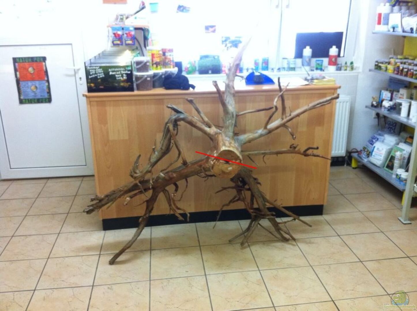 1x XXL-Moorkienwurzel (150Lx80Bx50H) (Mitte) 1x Moorkienwurzel 90cm (Rechts) 1x Moorkienwurzel 60cm (Links) Mehrere Steine Selbstgebaute Styropor-Rückwand hinter dem Aquarium Zur Beschreibung auf meiner Homepage