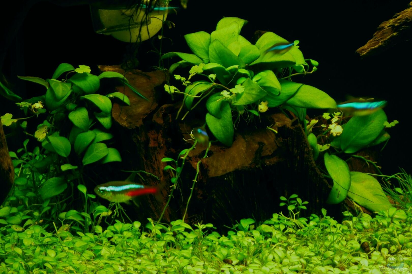 Anubias nana petite Bolbitis heudelotii Eleochris parvula Glossostigma elatinoides Hemianthus micranthemoides Hydrocotyle tripartita Isopterygium sp. ____ Flüssigdünger: Ferka Aquatilizer, Ferka Balance K, Düngekapseln: Ferka Stemma. Eine Sto??düngung beim Wasserwechsel, ergänzend tägliche Düngergaben in geringen Dosen CO2 Zugabe mit Druckgasflasche und Nachtabschaltung, 1 Blase/ sec., Zugabekontrolle über CO2 Dauertest