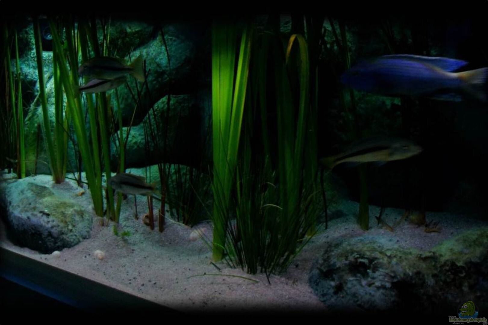 Räuber in der vegetativen Uferzone Dieses Becken ist ein Biotop-Aquarium, welches die vegetative Uferzone des Malawisees mit Röhricht und den dort lebenden Cichliden, wiedergibt. Die Besonderheit dieses Beckens ist, das bewusst versucht wurde, nicht nur strukturell sondern auch in Bezug auf die Flora, einer typischen Ufer- und Sumpfumgebung zu entsprechen. Mittels emers gedeihenden Pflanzen wie Schilf respektive Rohrkolben und einer afrikanischen Schwertlilien-Art werden die klassischen Grenzen [...]