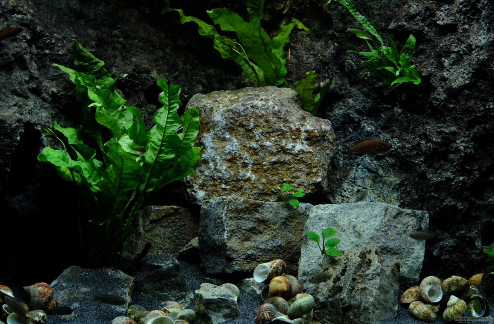 - Eckaquarium (Fluval Venezia 350) - gebogene Frontscheibe - Glasdurchführung für Au??enfilter - Rückwand von Steinzeit (Barsch-Rückwand mit Höhlen)