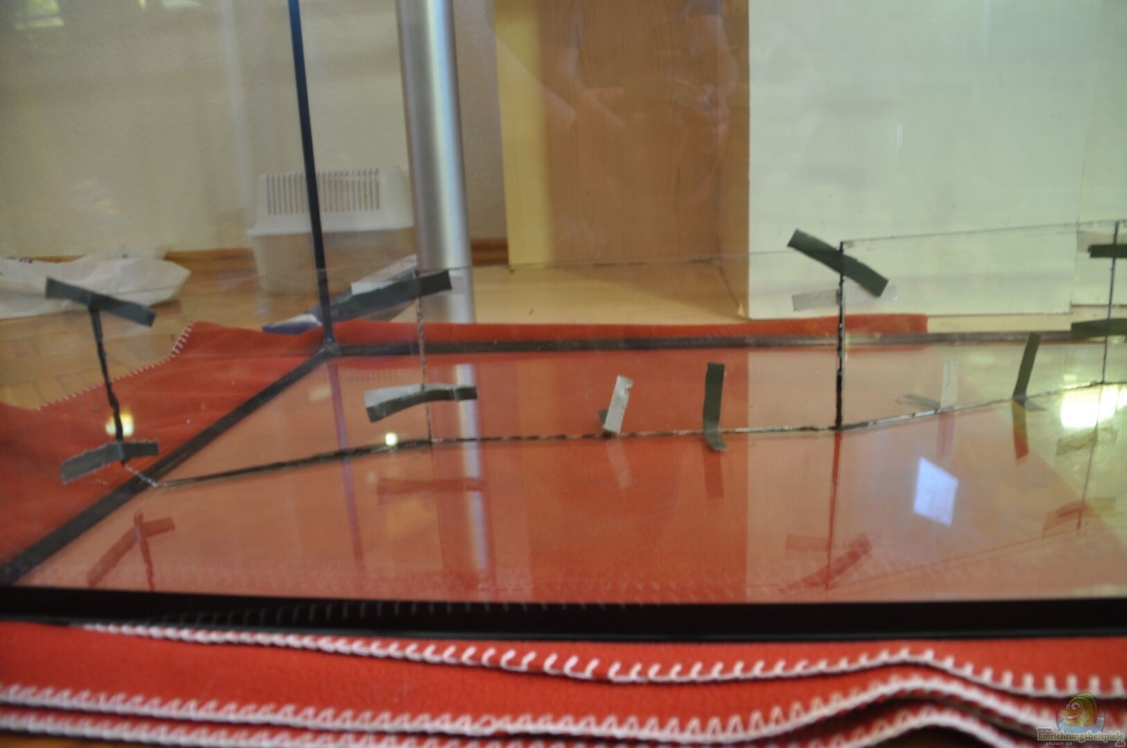 Wurzeln... Wurzeln... Wurzeln... verschiedene Grö??en und Formen. Die einen liegen, andere stehen und welche mit V2A - Schrauben und Saugnäpfen an der Rück- und Seitenscheibe befestigt, die dann bis zum kies reichen und Unterstände und Reviergrenzen schaffen. Zwei Kokosnusshöhlen im Hintergrund und drei Wels - Tonhölen in 2 verschiedenen grö??en.
