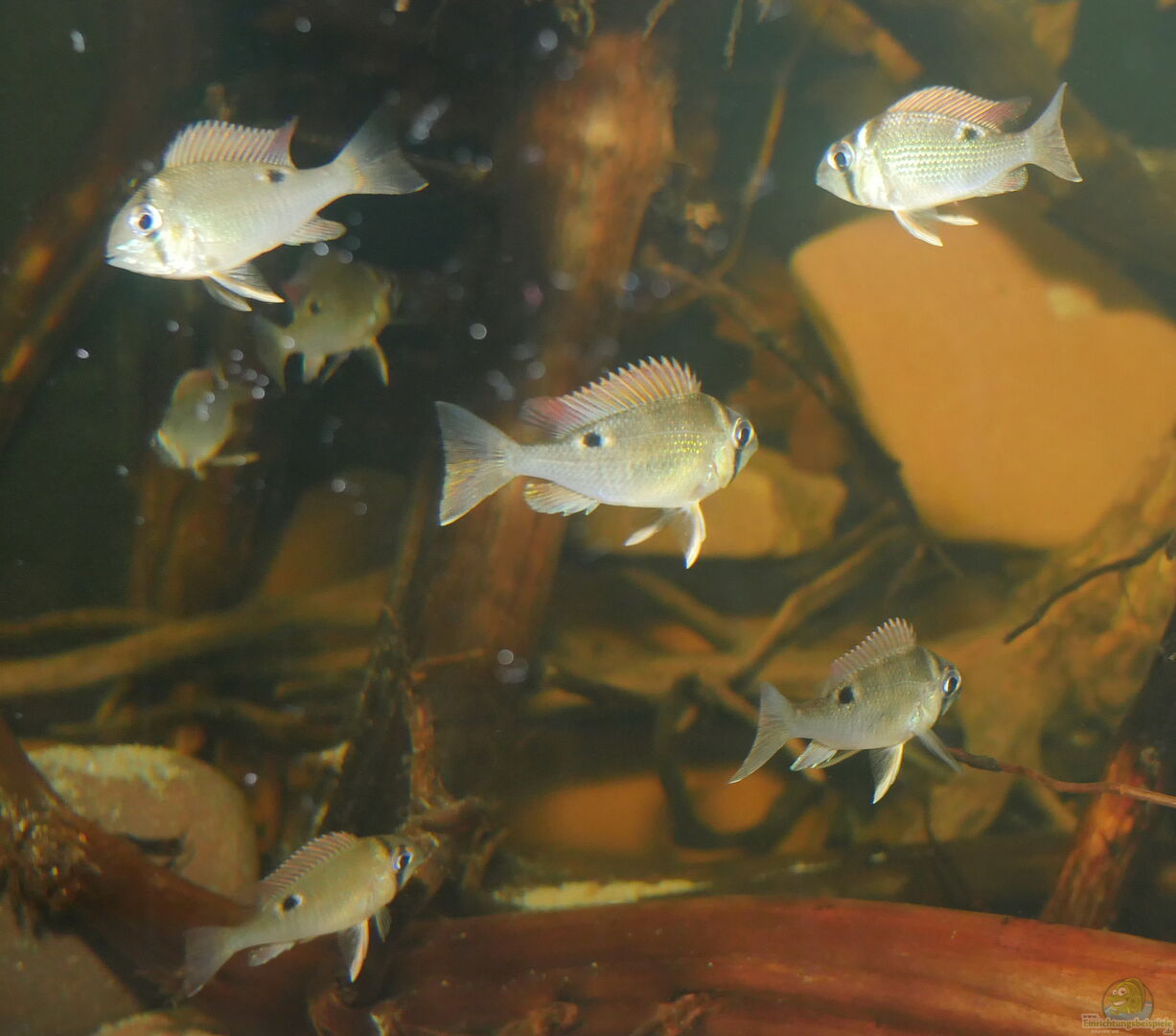 Cichliden: - 8 rot gepunktete 'Peru Altum' Wildfänge, Pterophyllum scalare aus dem Rio Nanay. - 12 halbwüchsige Schwanzstreifenbuntbarsche, Biotodoma cupido Wildfänge aus dem Rio Nanay. Wenn die Tiere ausgewachsen sind und es Stress gibt, werden sie auf 6-8 Tiere reduziert. - 6 junge Flaggenbuntbarsche, Mesonauta insignis F1. Werde hier am Ende nur ein oder zwei Paare behalten. Salmler - 30 schwarze Phantomsalmler, Hyphessobrycon megalopterus Welse: - 15 Corydoras Sterbai [...]