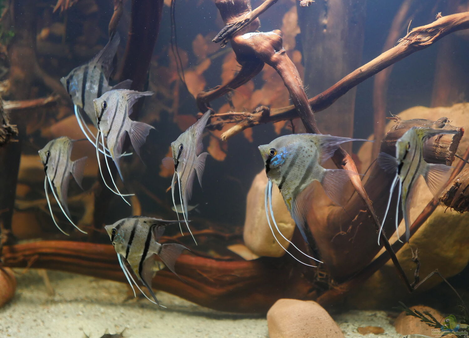 Cichliden: - 8 rot gepunktete 'Peru Altum' Wildfänge, Pterophyllum scalare aus dem Rio Nanay. - 12 halbwüchsige Schwanzstreifenbuntbarsche, Biotodoma cupido Wildfänge aus dem Rio Nanay. Wenn die Tiere ausgewachsen sind und es Stress gibt, werden sie auf 6-8 Tiere reduziert. - 6 junge Flaggenbuntbarsche, Mesonauta insignis F1. Werde hier am Ende nur ein oder zwei Paare behalten. Salmler - 30 schwarze Phantomsalmler, Hyphessobrycon megalopterus Welse: - 15 Corydoras Sterbai [...]