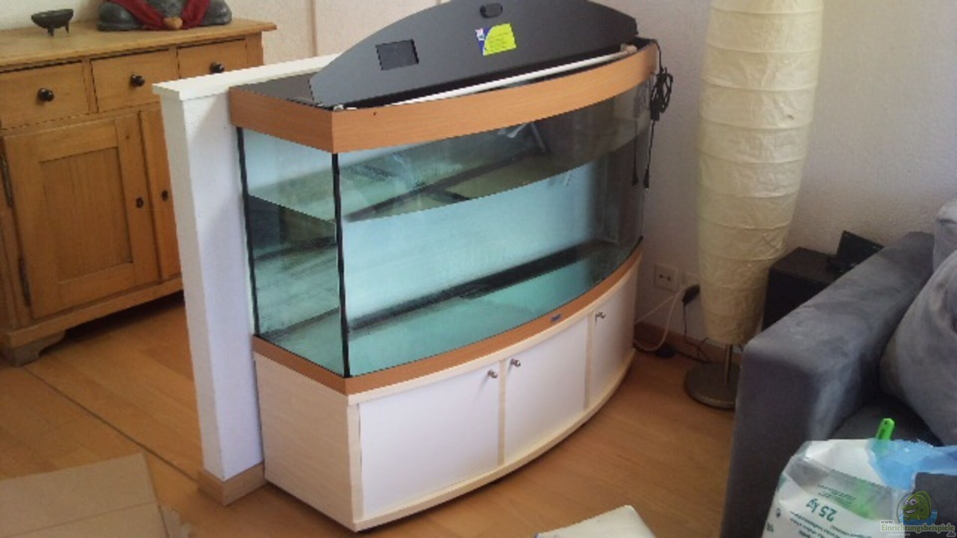 Unterschrank Eigenbau aus 25mm MDF-Platten Becken mit Dekorfolie optisch angepasst (Birkendekor statt Buche) Rückwand Spiegelfolie (Vergrössert das AQ optisch enorm)