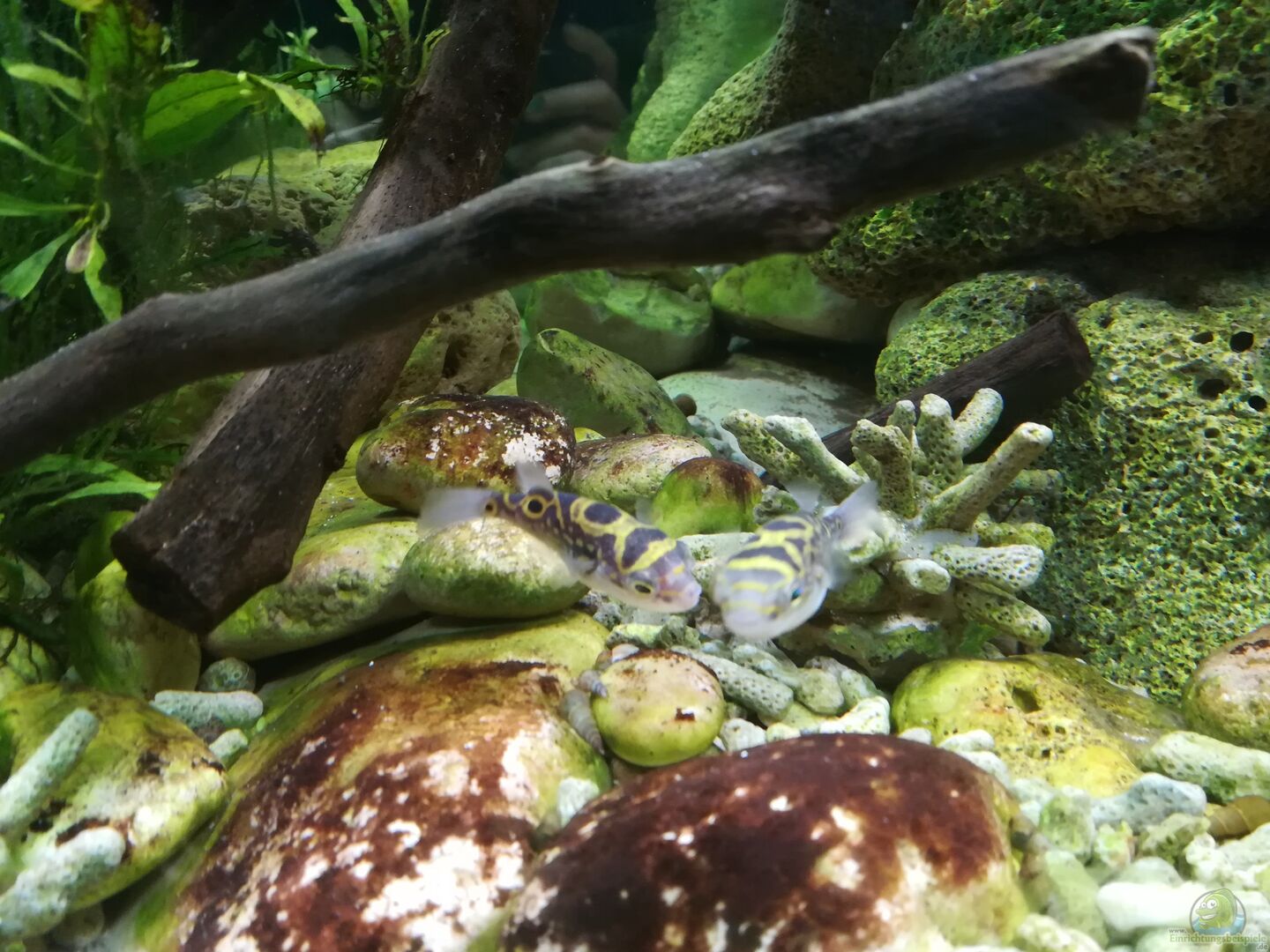 Das Becken ist ein reines Art-Aquarium, mit 2 Kugelfischen (Tedradon Biocellatus). Die Fische sind untereinander sehr friedlich, keine Spur von Aggression (was bei Kugelfischen allgemein eher selten ist) !