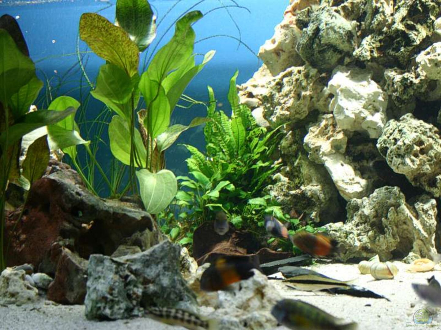 Ca. 250 kg Afrikanisches Lochgestein, Steine und Steinholz mit aufgebundenem Javafarn und Anubias.